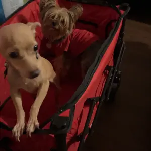 Arrived quickly. Easy assembly. Nice quality. Using it to for my pups when they get tired on our walks.
