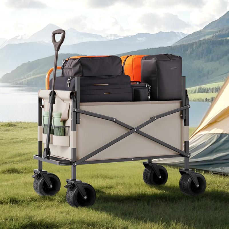 ·High Weight Capacity & Large Storage: With a robust 550lbs (about 250kg) weight capacity and a spacious 29.72 x 16.14 x 11.81 inches / 755 x 410 x 300mm storage compartment, this utility cart for camping can easily carry shopping goods, camping gear, or gardening tools, reducing the hassle of multiple trips. It provides reliable transport support for families and outdoor enthusiasts.