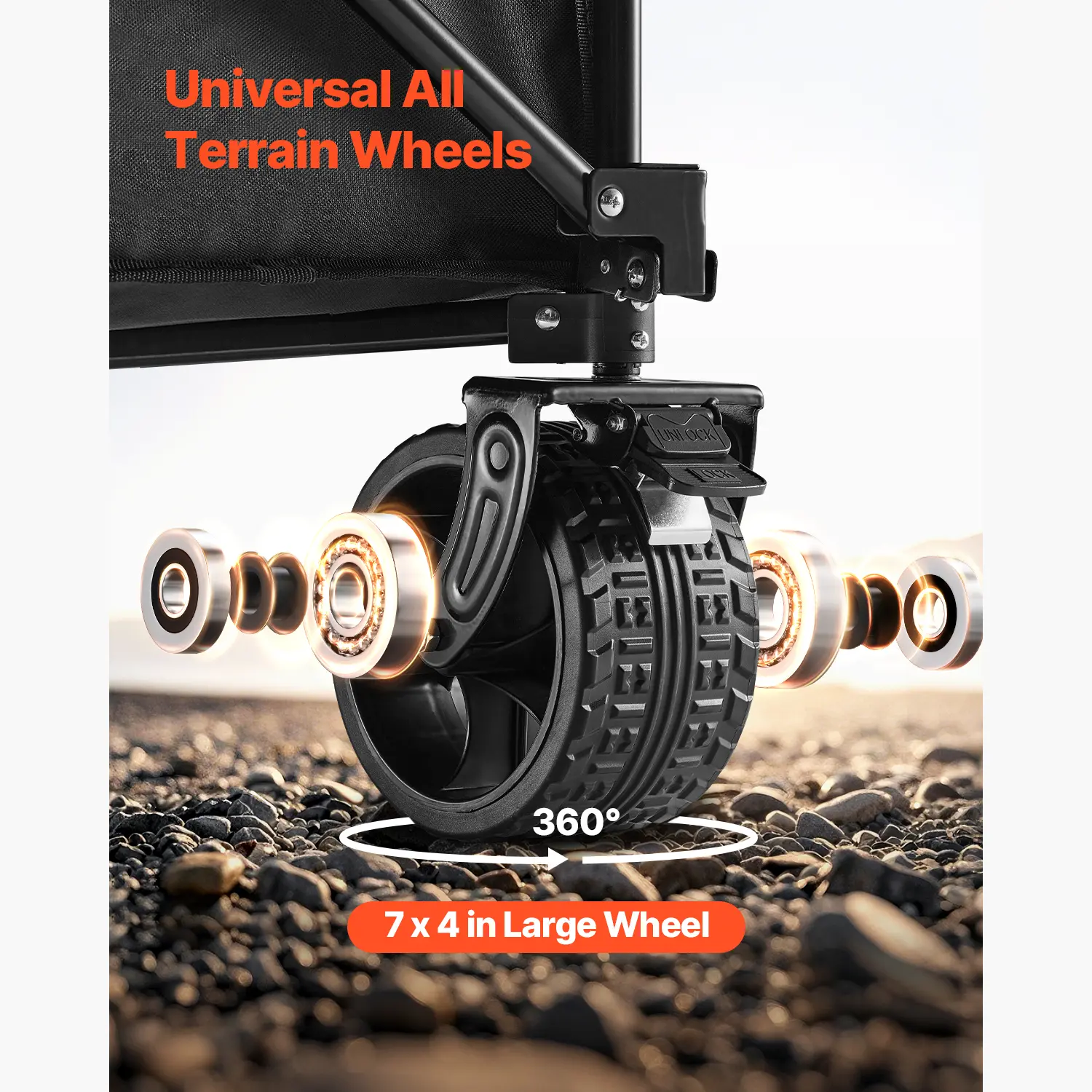 • All-Terrain Wheels: This folding yard cart is equipped with 7x4-in PVC wheels, allowing for easy movement on various surfaces, including sand, grass, and paved streets. Whether you use it for outdoor adventures, shopping, or transporting garden supplies, it can meet your needs.