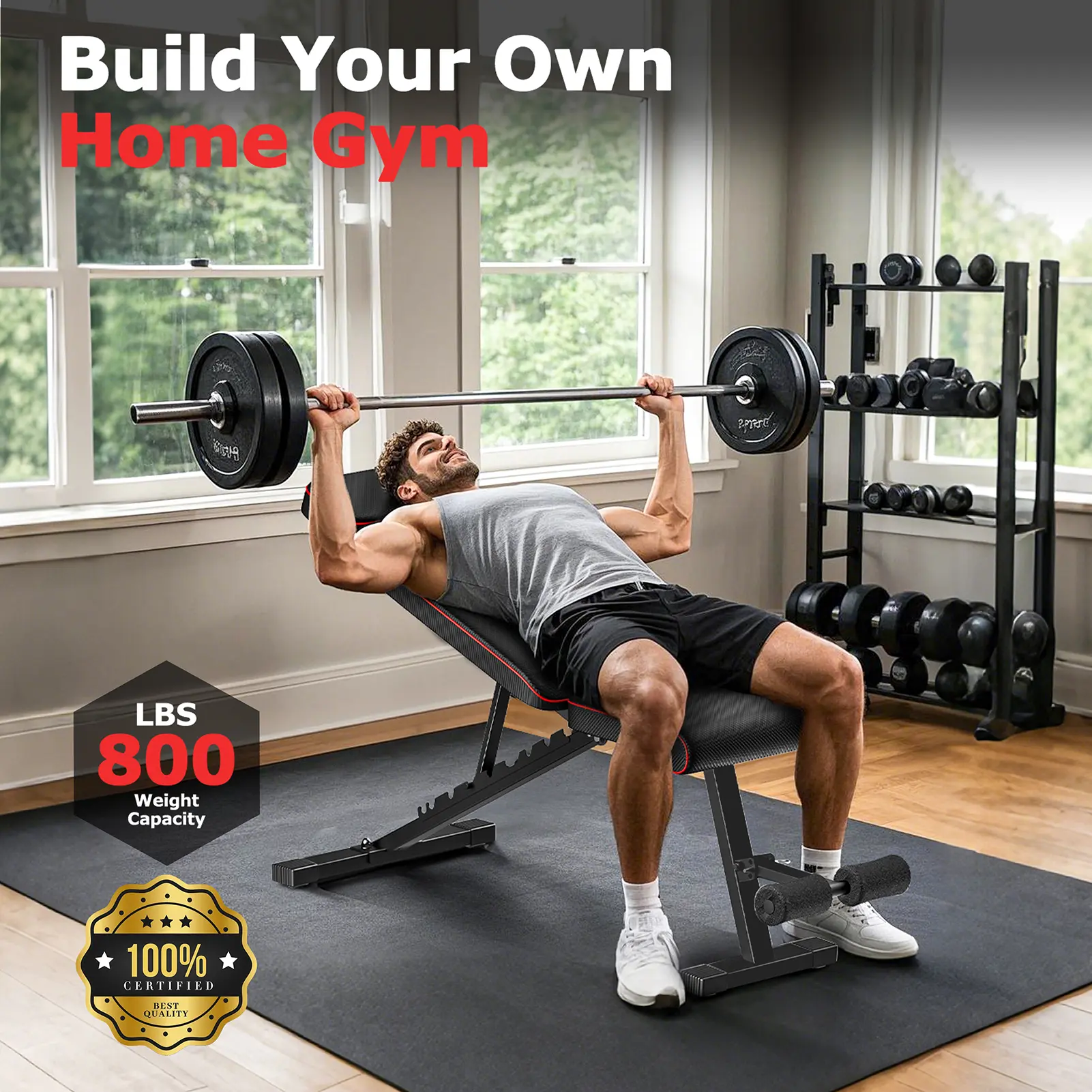 800LBS Load Capacity: Designed with heavy-duty steel, this bench supports a maximum weight of 800 lbs, ensuring stability and safety during workouts.