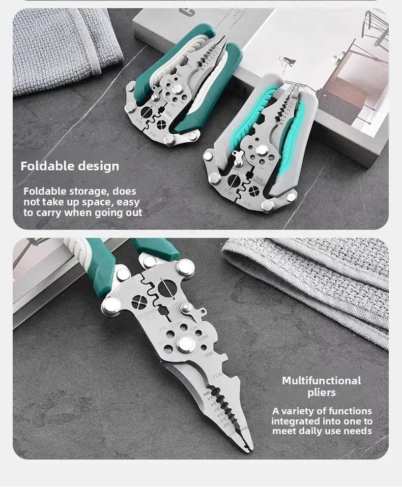 ·This foldable wire stripping pliers is a professional multifunction manual hand tool. It features a pulley design for enhanced crimping and wrapping capabilities. Ideal for various electrical and wiring tasks. 🛠️