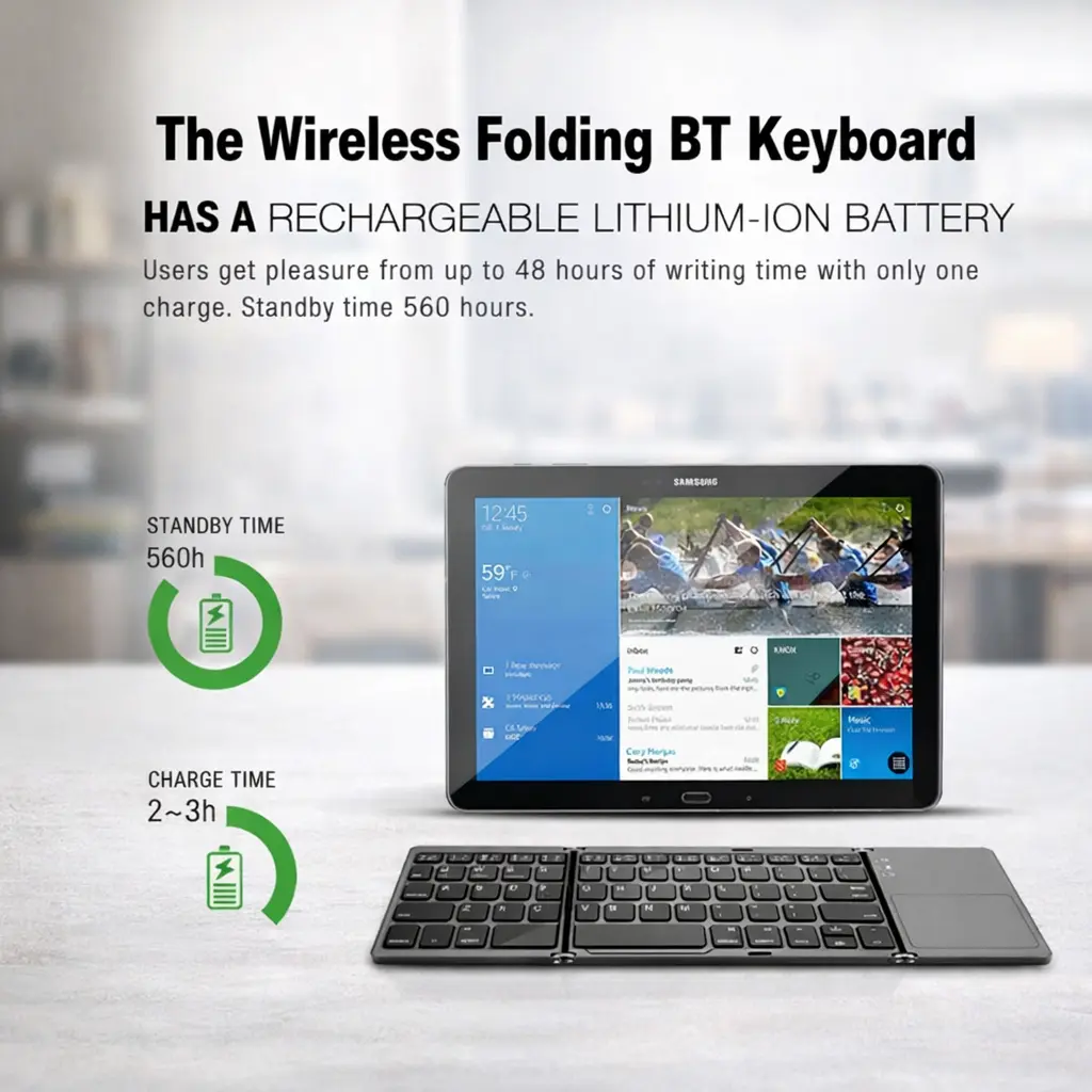 Foldable Wireless Keyboard, Rechargeable Portable Mini Folding Keyboard for iPad, Tablet, Phone, Windows, Android & iOS Devices, Compact Travel Keyboard