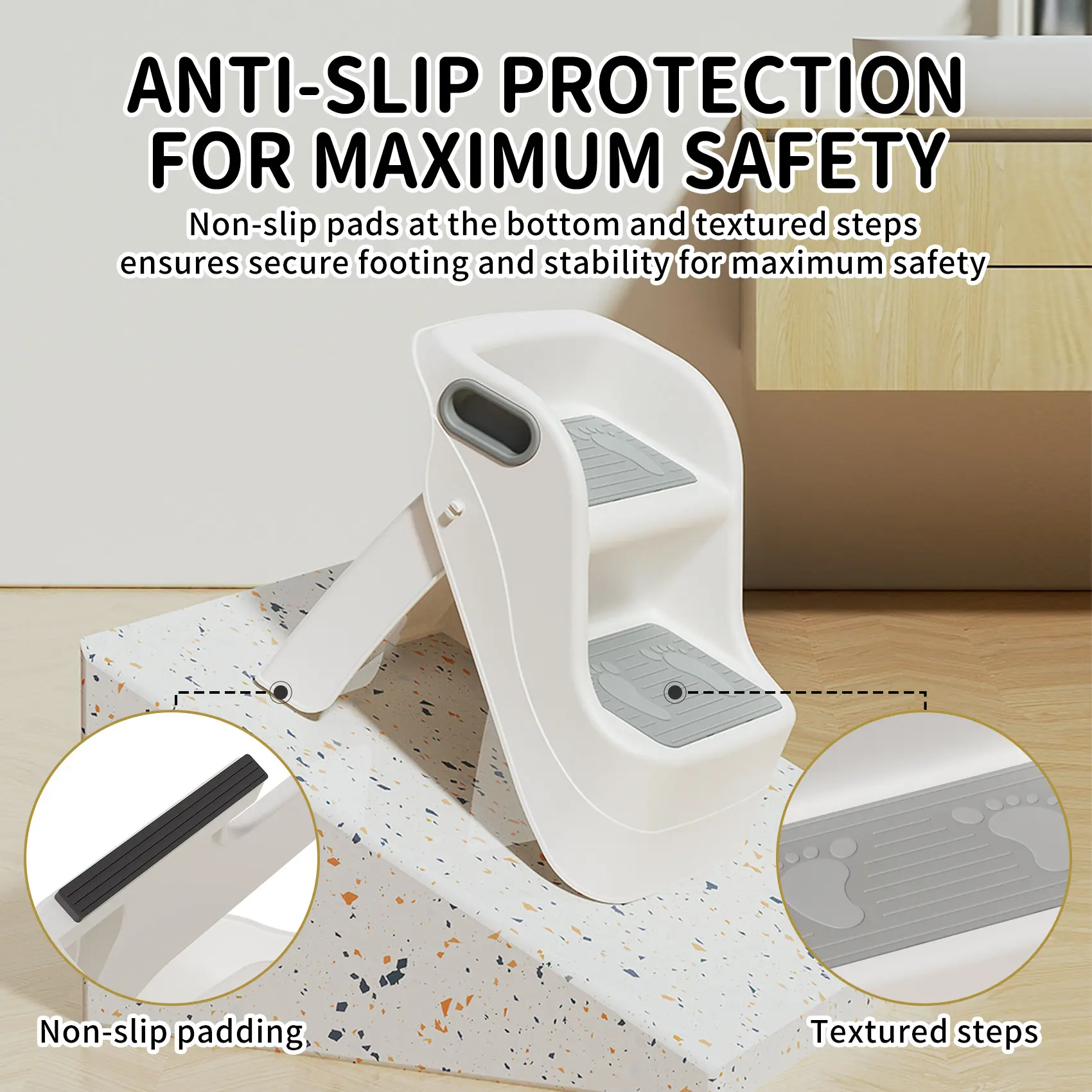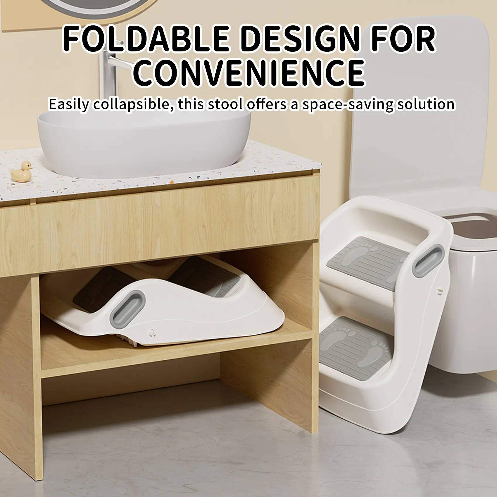 ·All-in-One VersatilityWhether it's a step stool for the toilet, bathroom sink, or kitchen counter, this multi-use helper is ready to assist. Made from durable, high-quality materials, it’s built to handle daily use in every room of your home.
