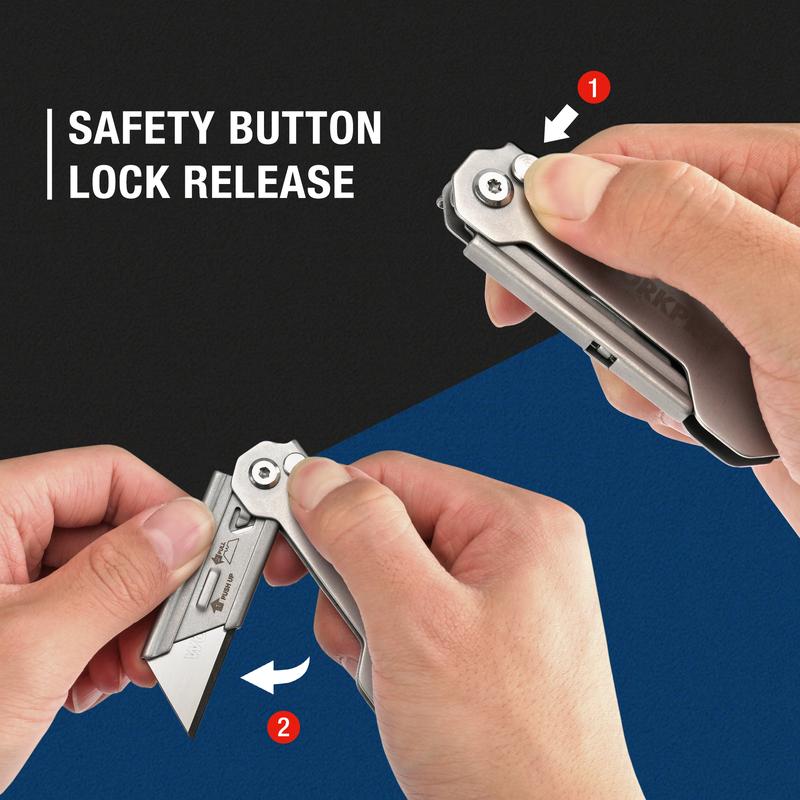 ·Quick Blade Change Mechanism: Pull out the blade with the push-up of a button and easily replace the new sharp blade with your hand, no need for a screwdriver or any other tools for disassembling. One more big plus is that it can accommodate all standard or pro-grade utility knife blades