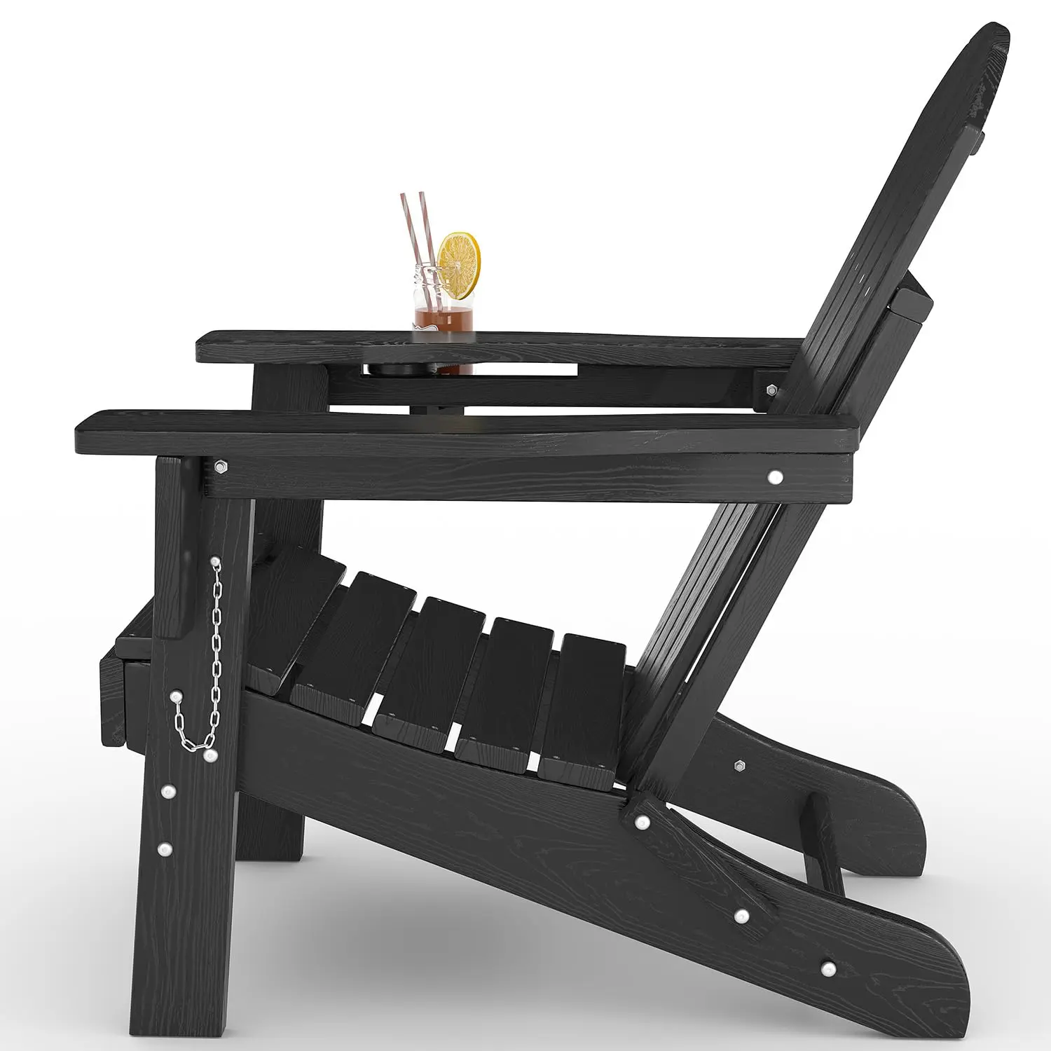 【Classic Wood Look, Modern Durability】These Adirondack patio chairs are crafted from durable HDPE plastic, offering the timeless aesthetic of real wood grain without the maintenance. They resist fading, moisture, and cracking for year-round outdoor use.