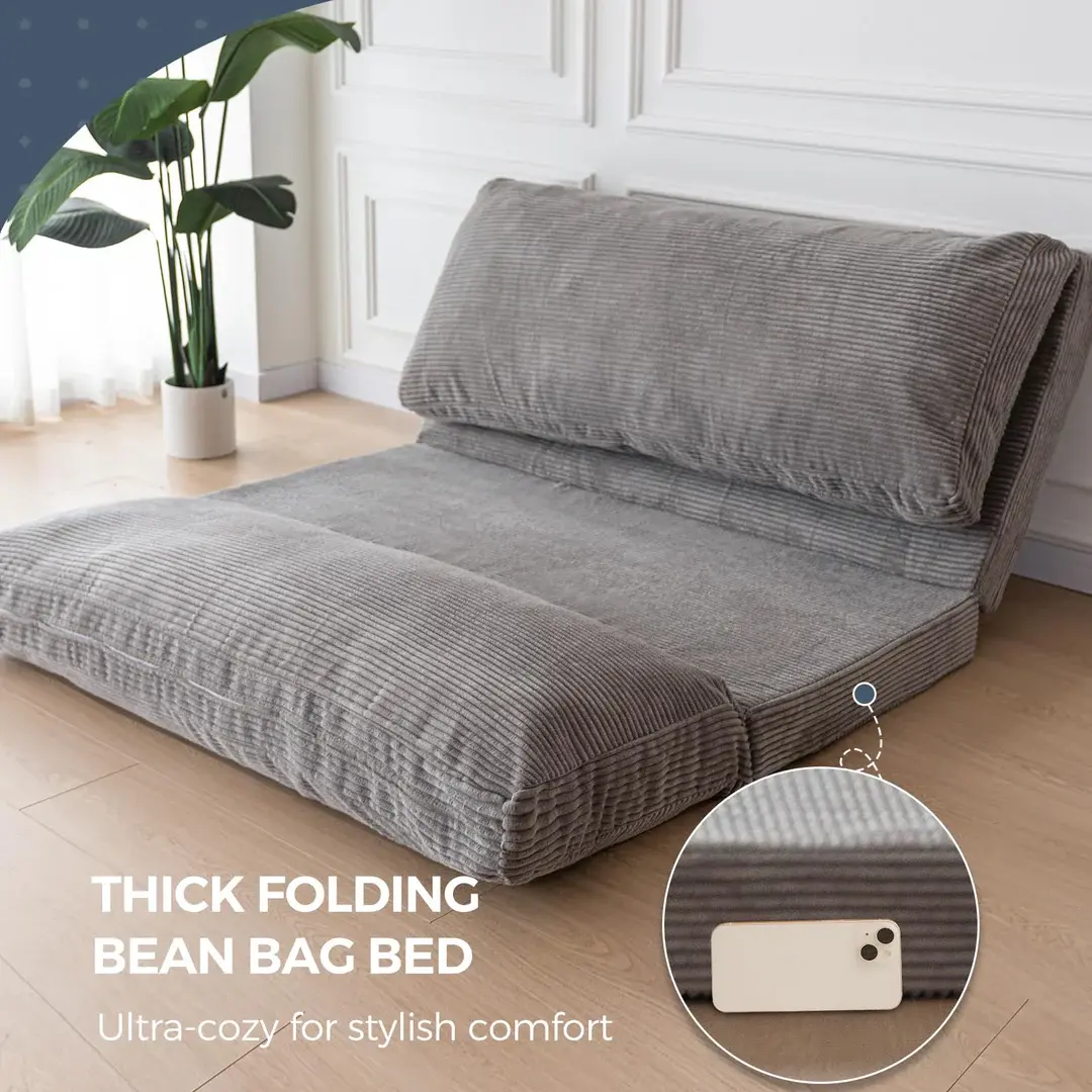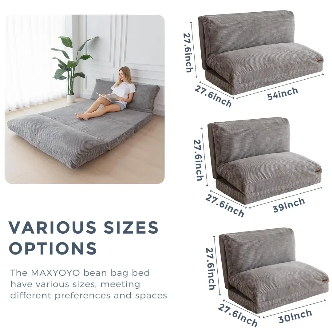 Corduroy Fabric: The floor mattress is made of corduroy fabric, which is ultra-cozy for stylish comfort. Enjoy lying in the soft chair whenever you're ready to get cozy. The unfold size is about Single 30x95 Inch, Twin 39x95 Inch, Full 54x95 Inch