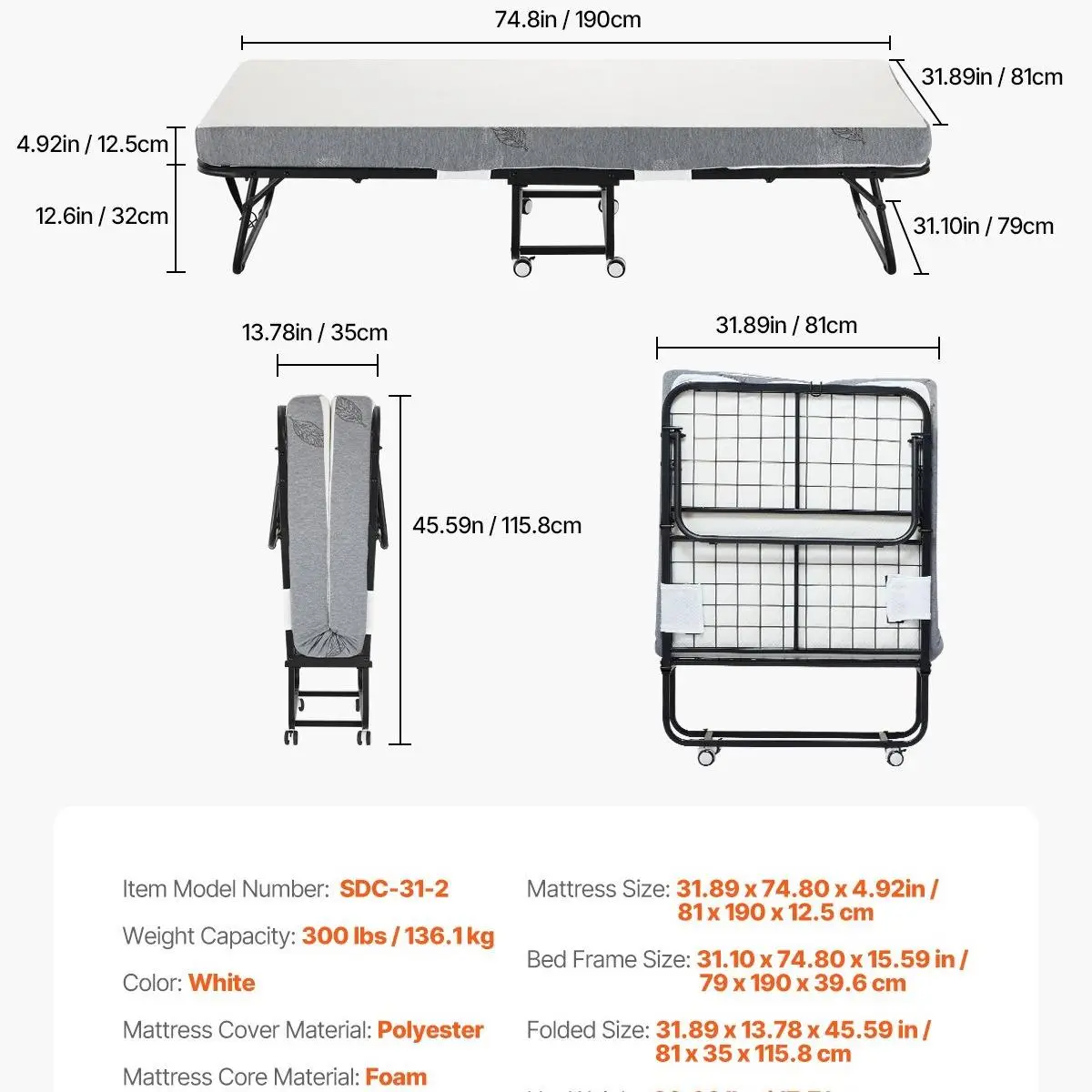 ·Easy to Fold and Store: This rollaway bed is convenient and quick to use. One person can easily fold and unfold it. It expands to a large size but folds to a compact size, making it easy to store in a corner without taking up much space. You can also use the included dust coverlet to shield it from dirt.