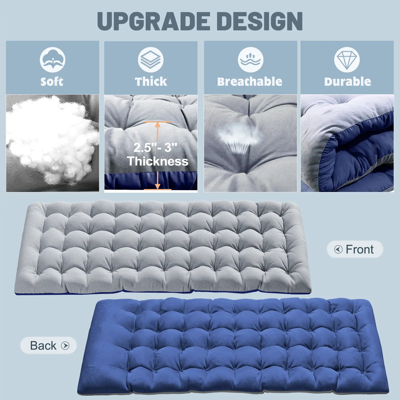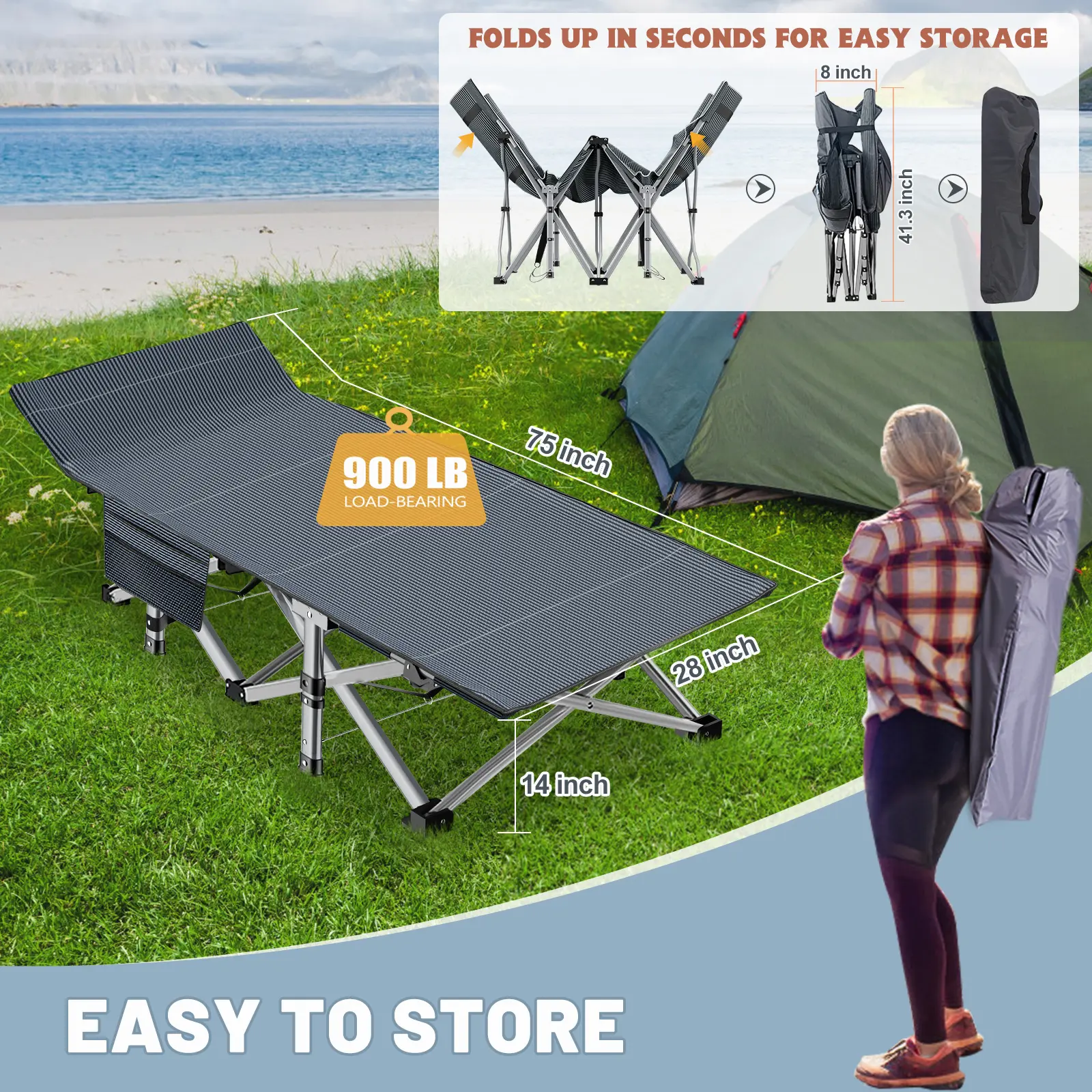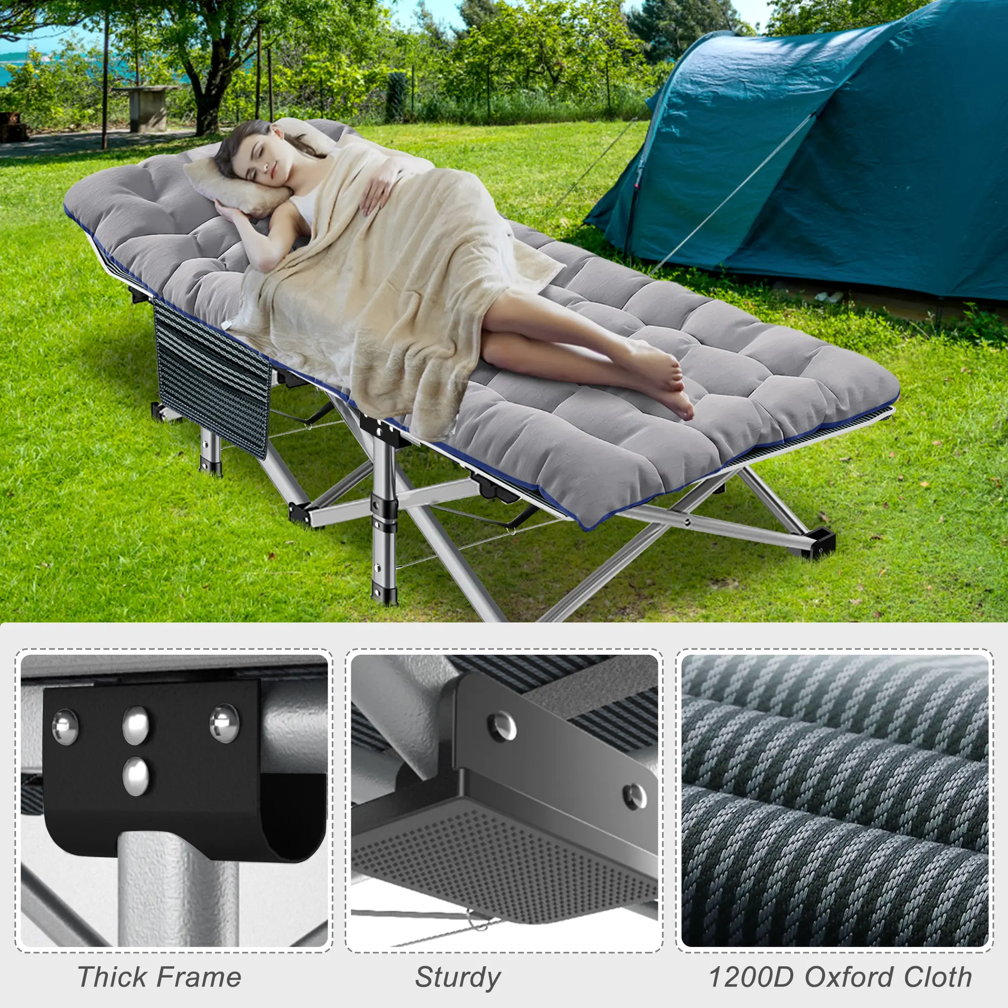 • Equipped with a reversible cushion mattress. Enjoy comfort in this portable folding camping bed. In hot weather, remove the cushion for breathability. Features a 3.3-inch thickened pearl cotton pad for warmth in autumn and winter.
