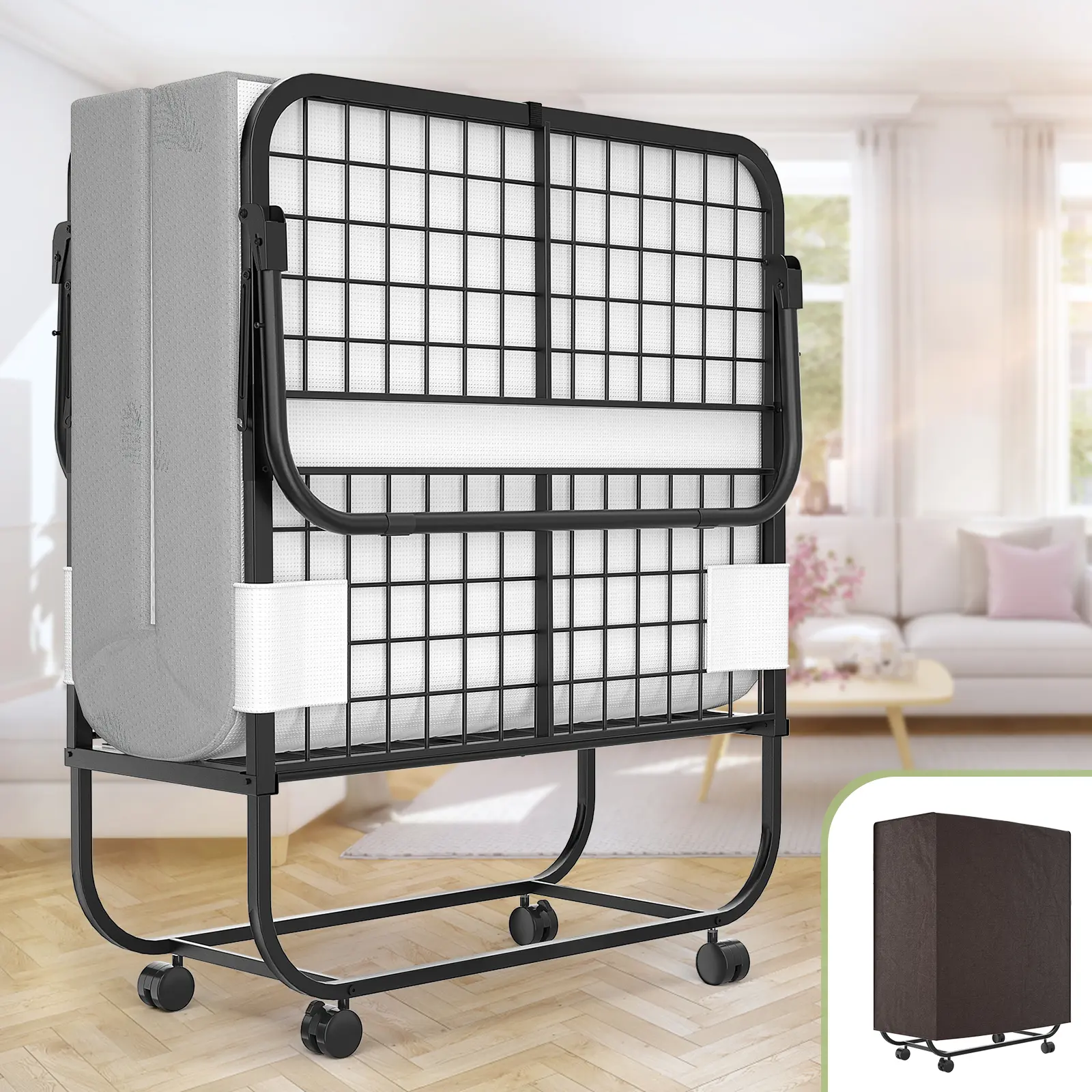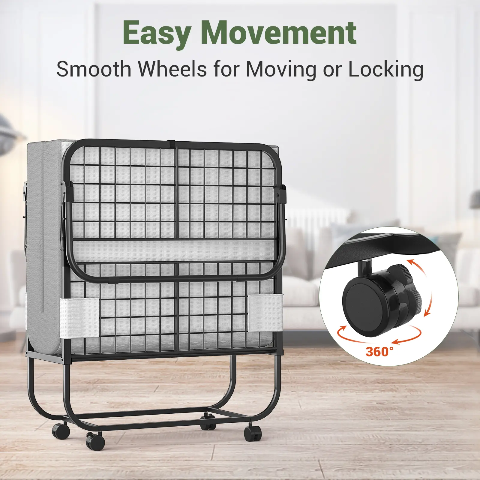 ·️【Movable & Convenient】This folding bed comes with 4 flexible and smooth caster wheels that allow you to move the bed to any place you want on your own. 360° swivel wheels make it easier to transport or carry. And the lockable function of the wheels confirms the stability when you use it.