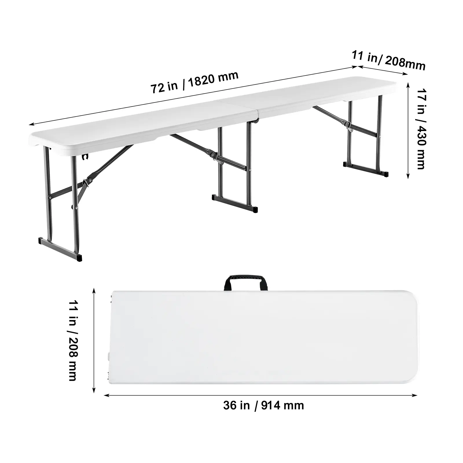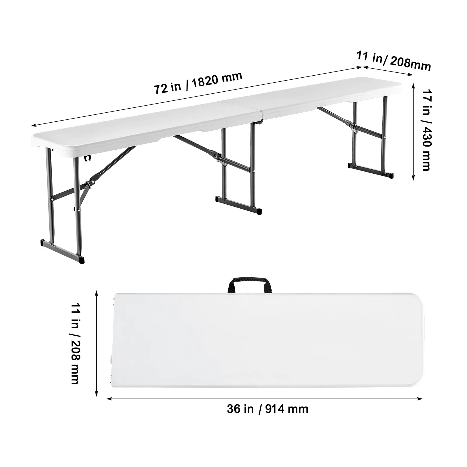 • Comfortable Seating: This 72x11x17 inch / 1820x280x430 mm (1-piece ) 6FT folding bench is highly portable and lightweight, providing comfortable seating with no assembly required. Simply unpack and use.