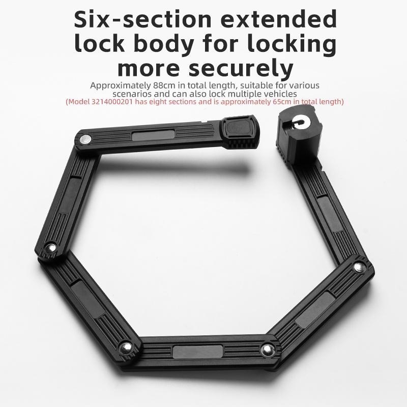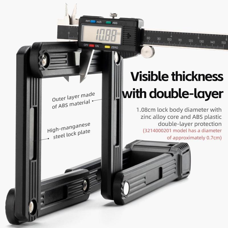 ·Portable and High-Strength Protection - On-the-Go Security: Take it with you anywhere! Our Portable Folding Lock boasts a silicone strap storage frame, ready to go in seconds. The extended lock body secures not only your bike but also more of your valuable belongings.