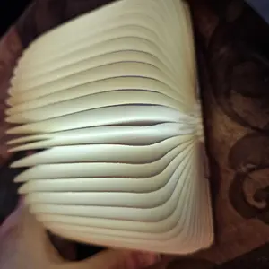 The product itself is cute. I was expecting the book lamp to be the size of an actual book, but instead it is only a little bigger than a wallet. You will have to open and stretch it out when you receive it, since the pages don’t want to stay open.