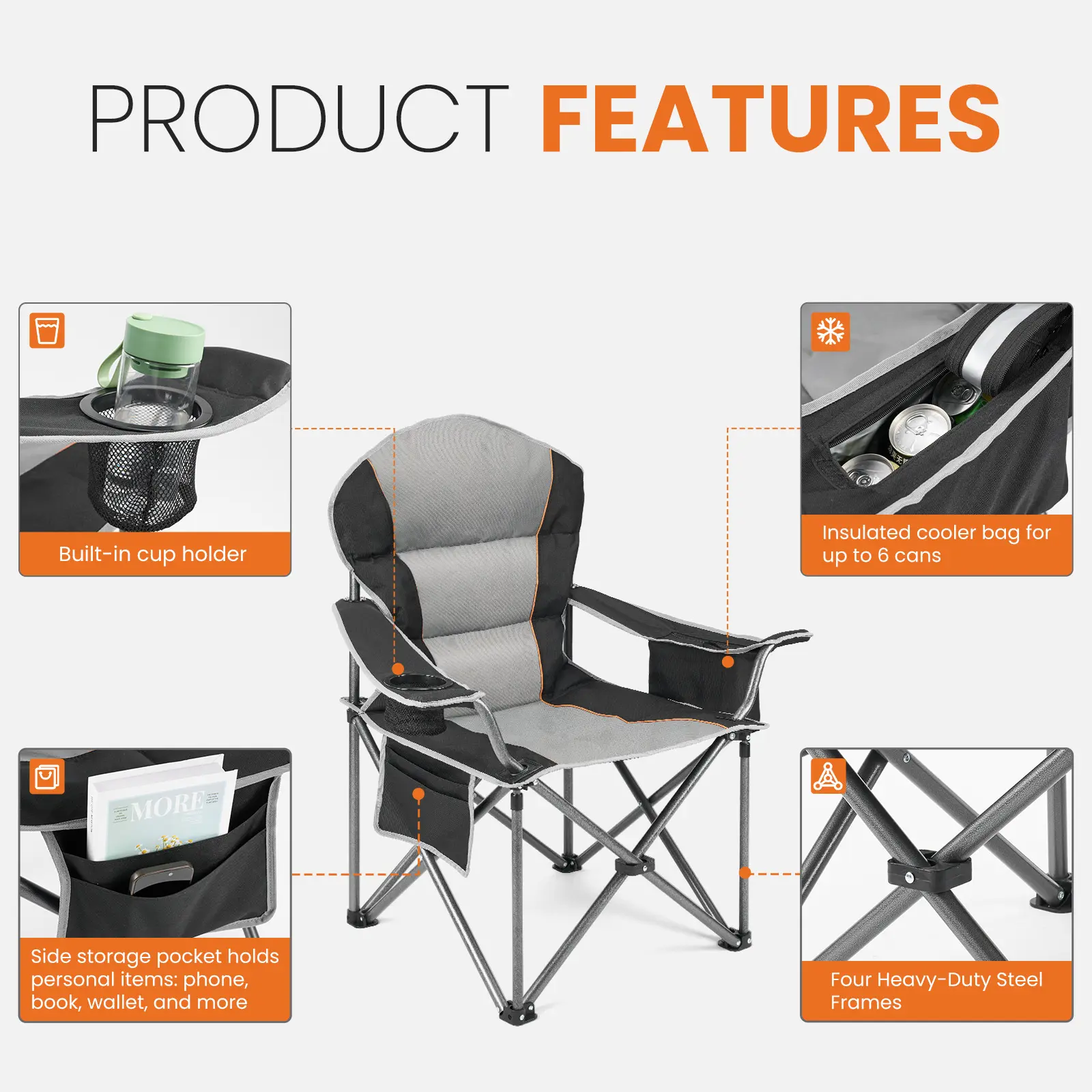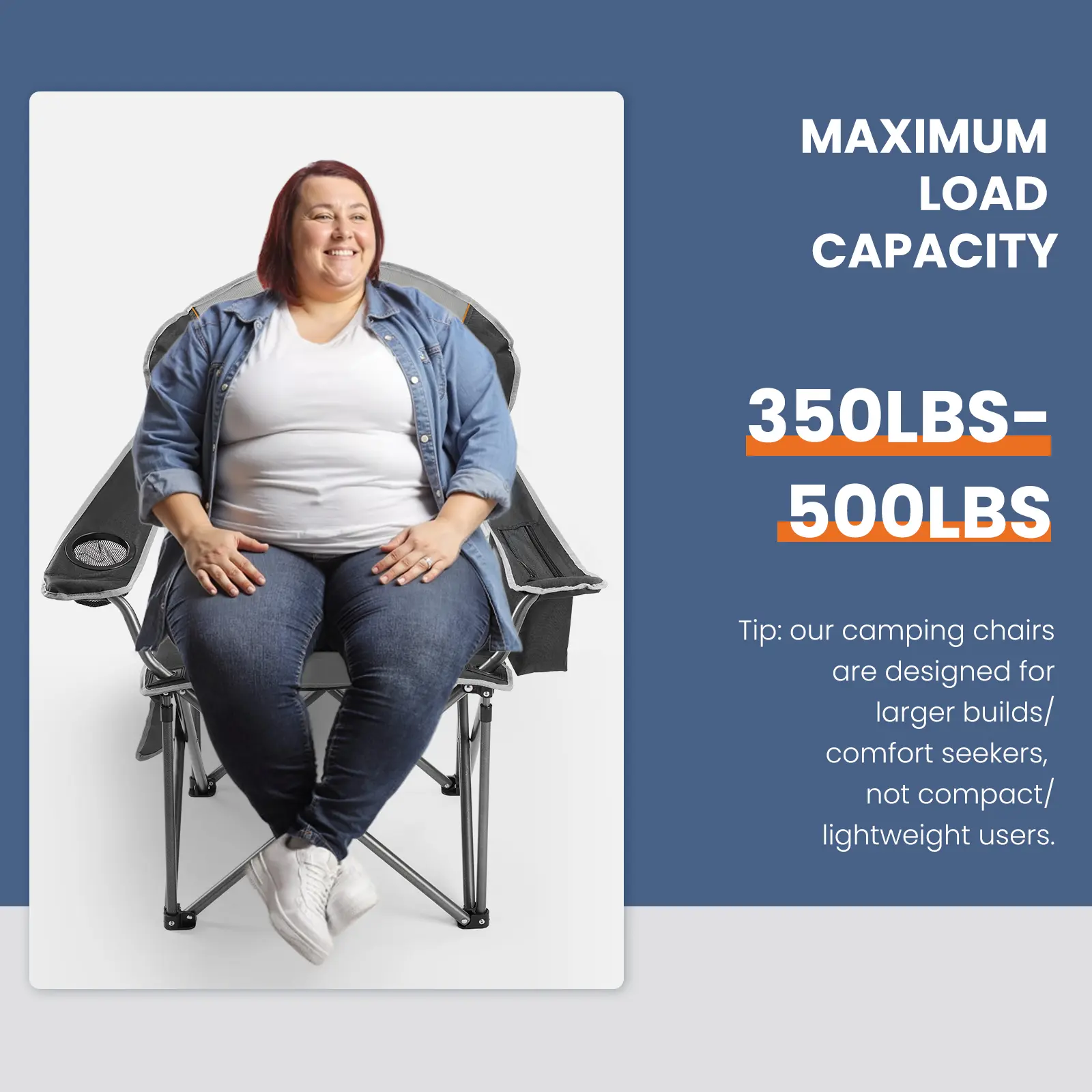 ·PORTABLE & CONVENIENT - The Heavy Duty Portable camping chair is lightweight, weighing only 11lbs; folding design, easy to carry and store, ideal for camping trips, fishing, BBQ, beach, backyard, and more