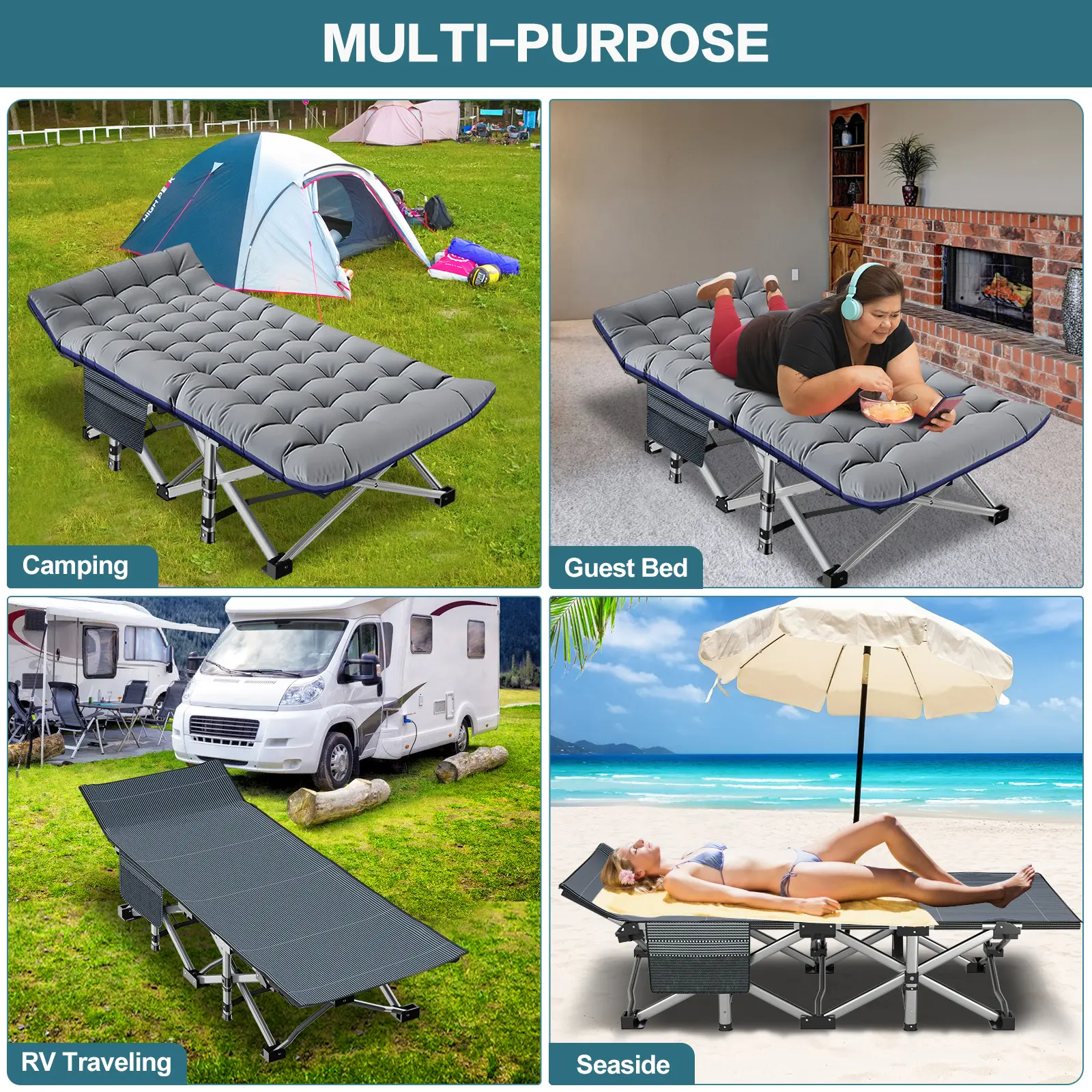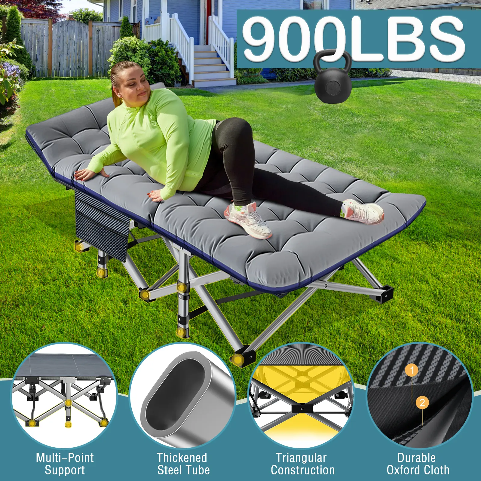 【Sturdy & Durable】: Unique square high strength steel tubes design. Weights 7.2kg/15.8lbs; Supports up to 800 lbs. Can bear 1 adult or 2 children sleeping on it to rest.