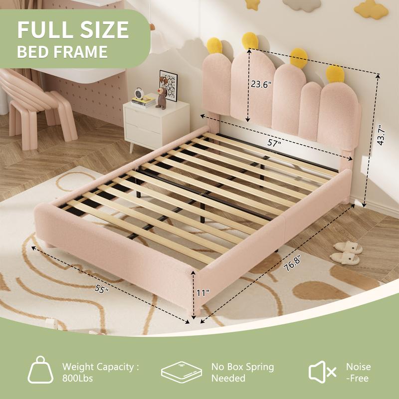 Cloud-Like Comfort: Snuggle up in this fully upholstered bed frame made with soft, rounded fiber fabric. Plush, cloud-inspired design in white, pink, or gray for ultimate cozy vibes ☁️
