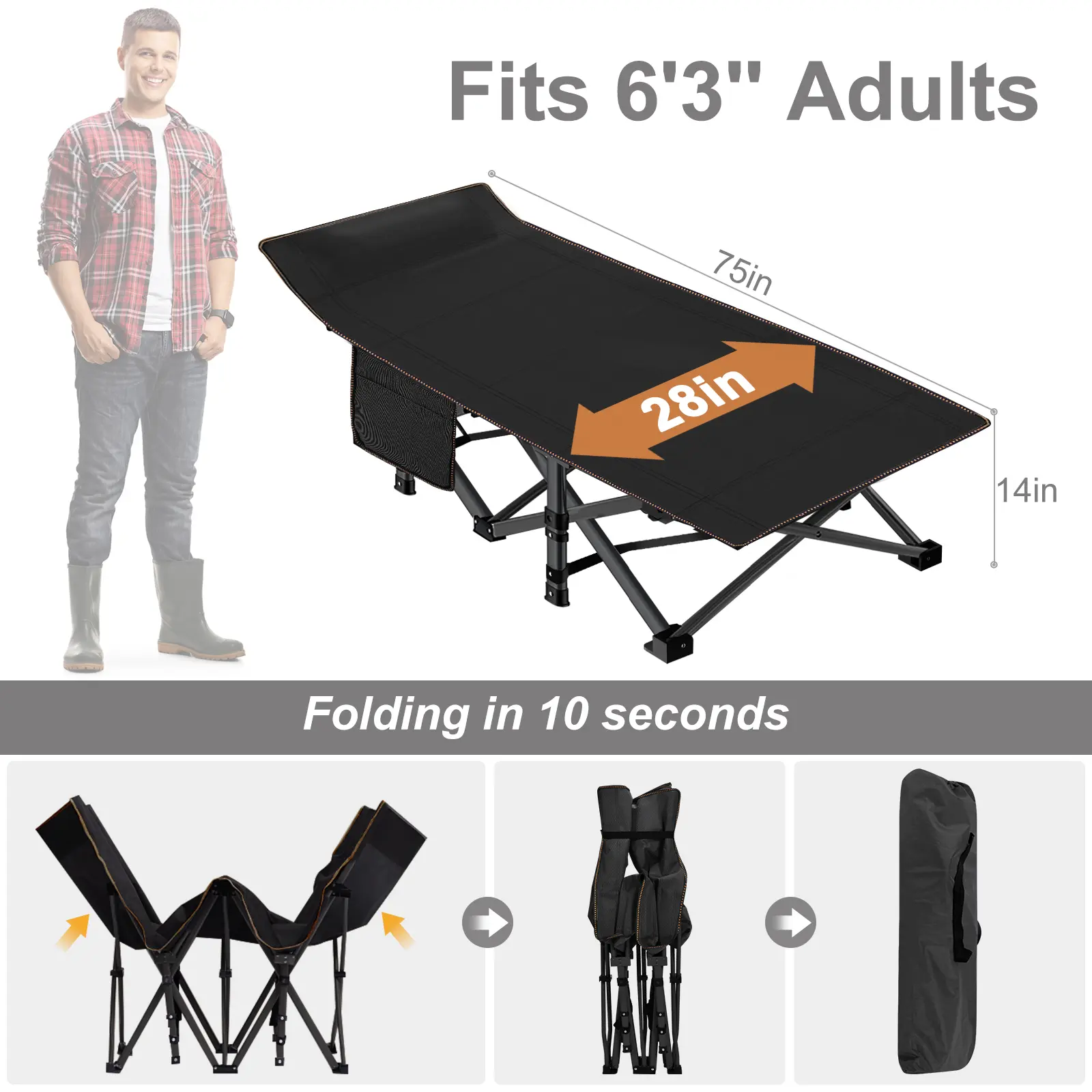EASY SETUP - Compact, incredibly fast and easy to set up. Expanded size: 75"*28"*14", Folded size: 41.3'' * 8''.