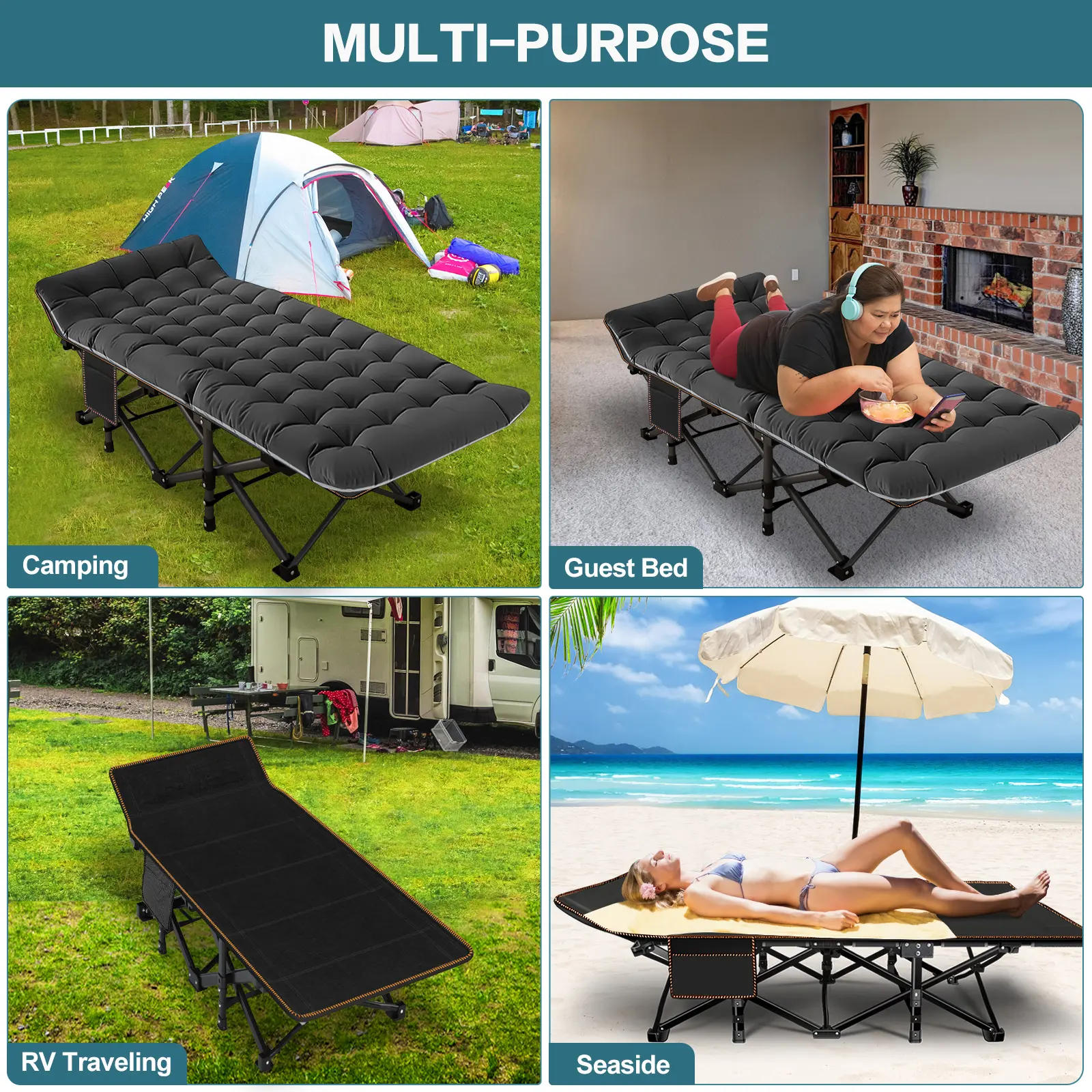 【Wide Range of Applications】 Great folding cot, outdoor cot, camping cot with mattress, for hiking, camping, traveling, hunting or as a snap cot in the office; also a perfect temporary bed when guests visit your home.