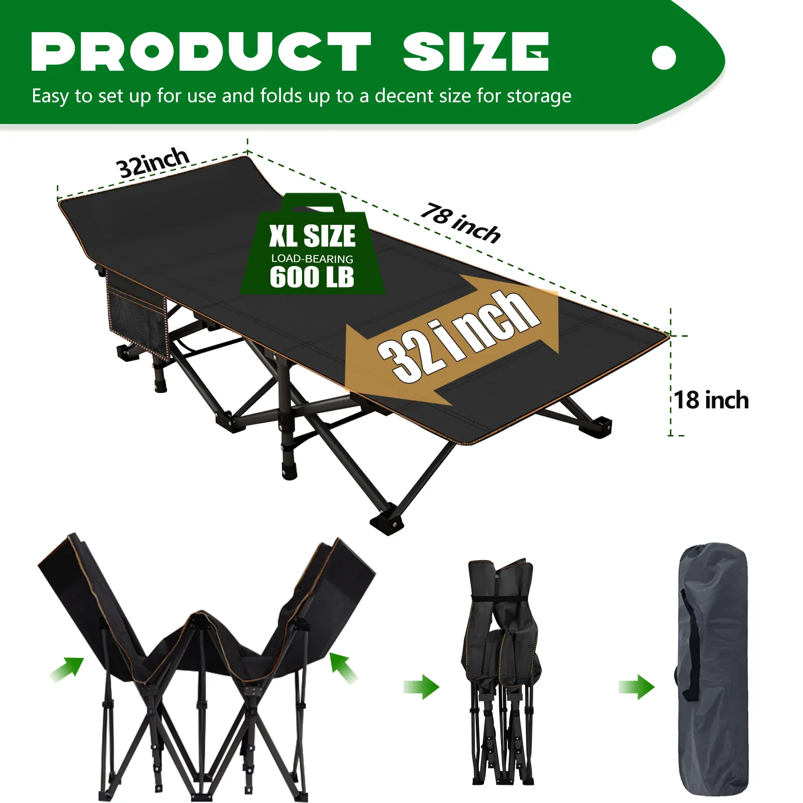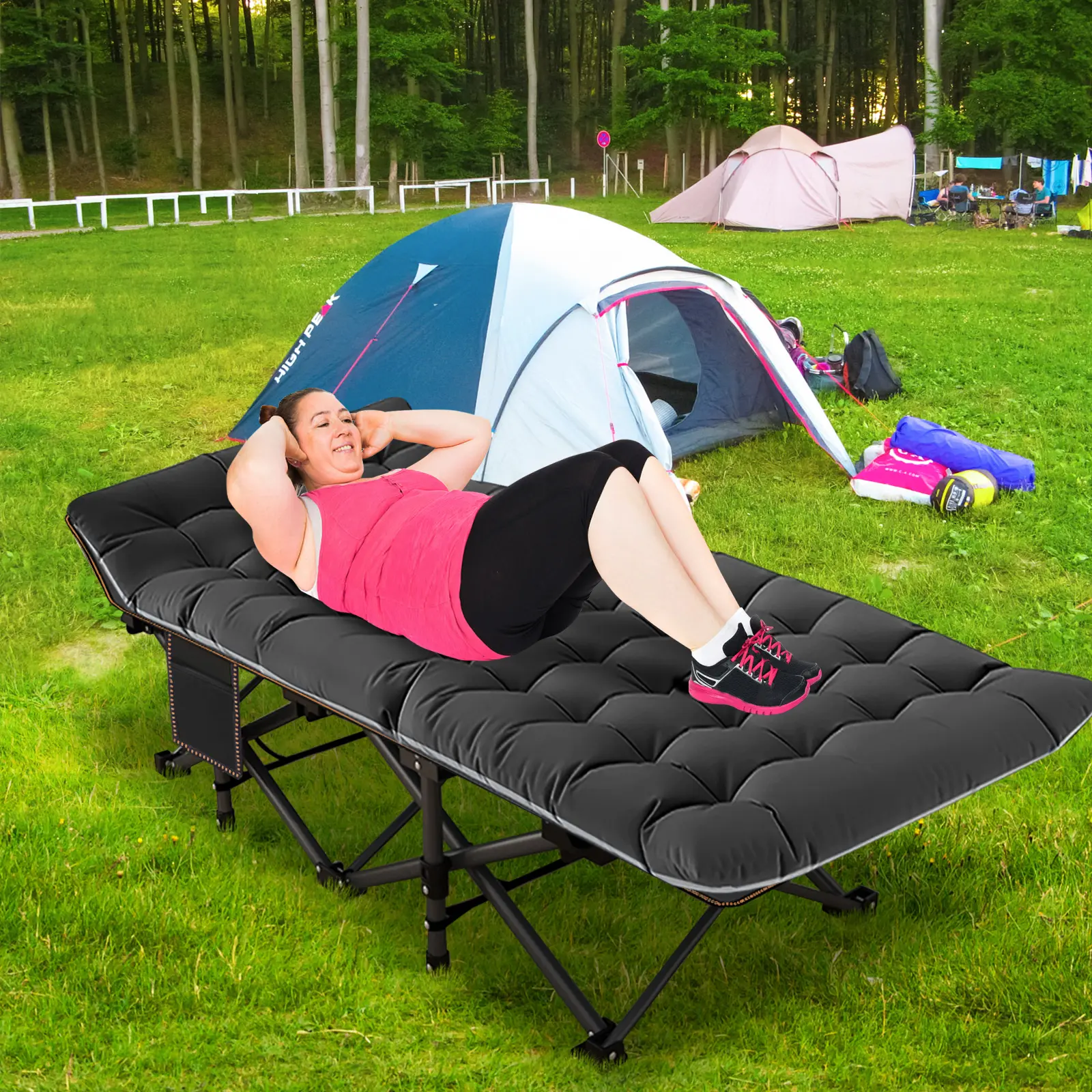 【 Compact Design】 Folding cot design saves space and it is easy to carry and store. This folding camping cot is great for the outdoors and indoors.