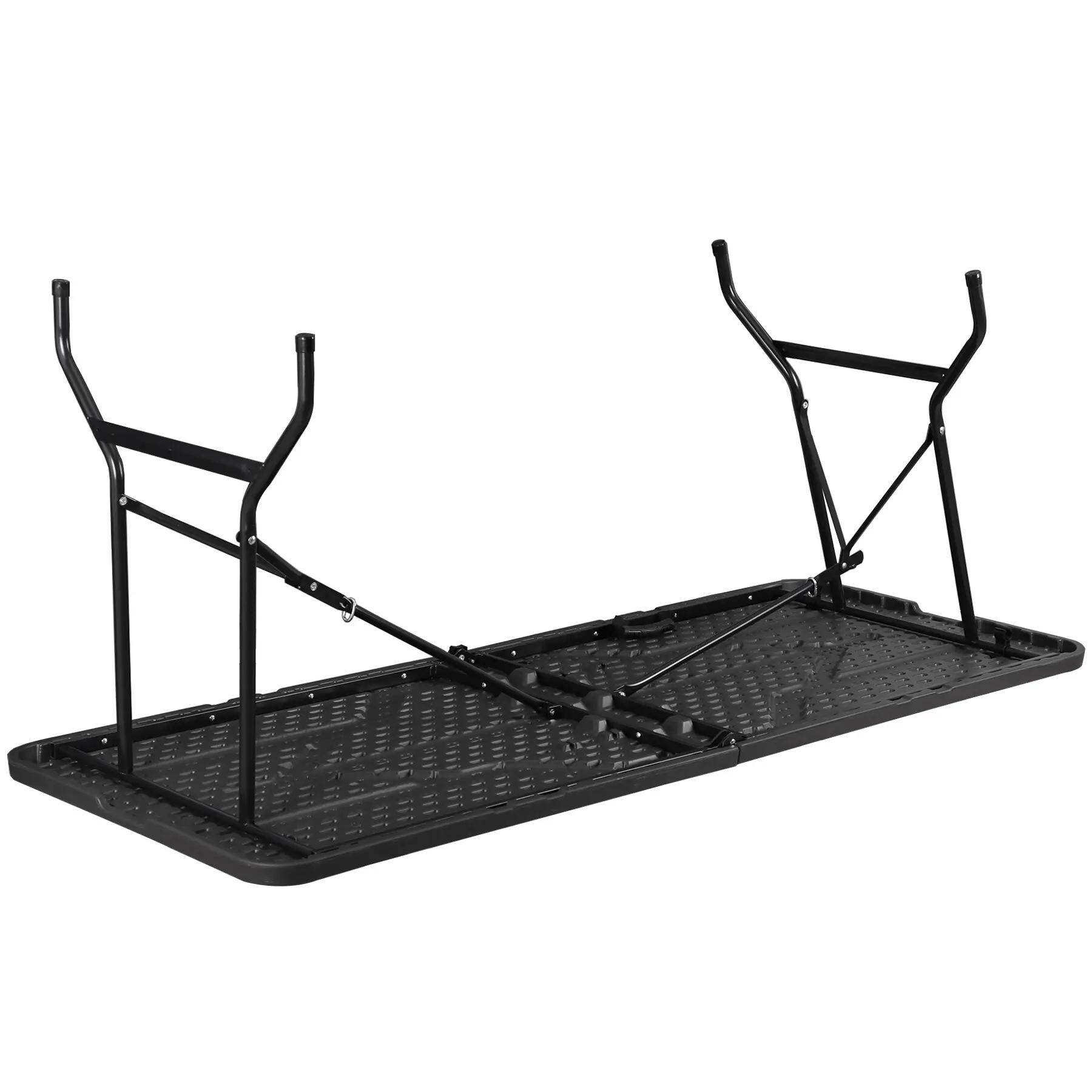 The table's durability and sturdiness come from its construction of high-density polyethylene and powder-coated steel, ensuring superior strength. With dimensions of 70.9" x 27.4", it can support up to 350 lbs, providing a reliable surface for numerous activities.