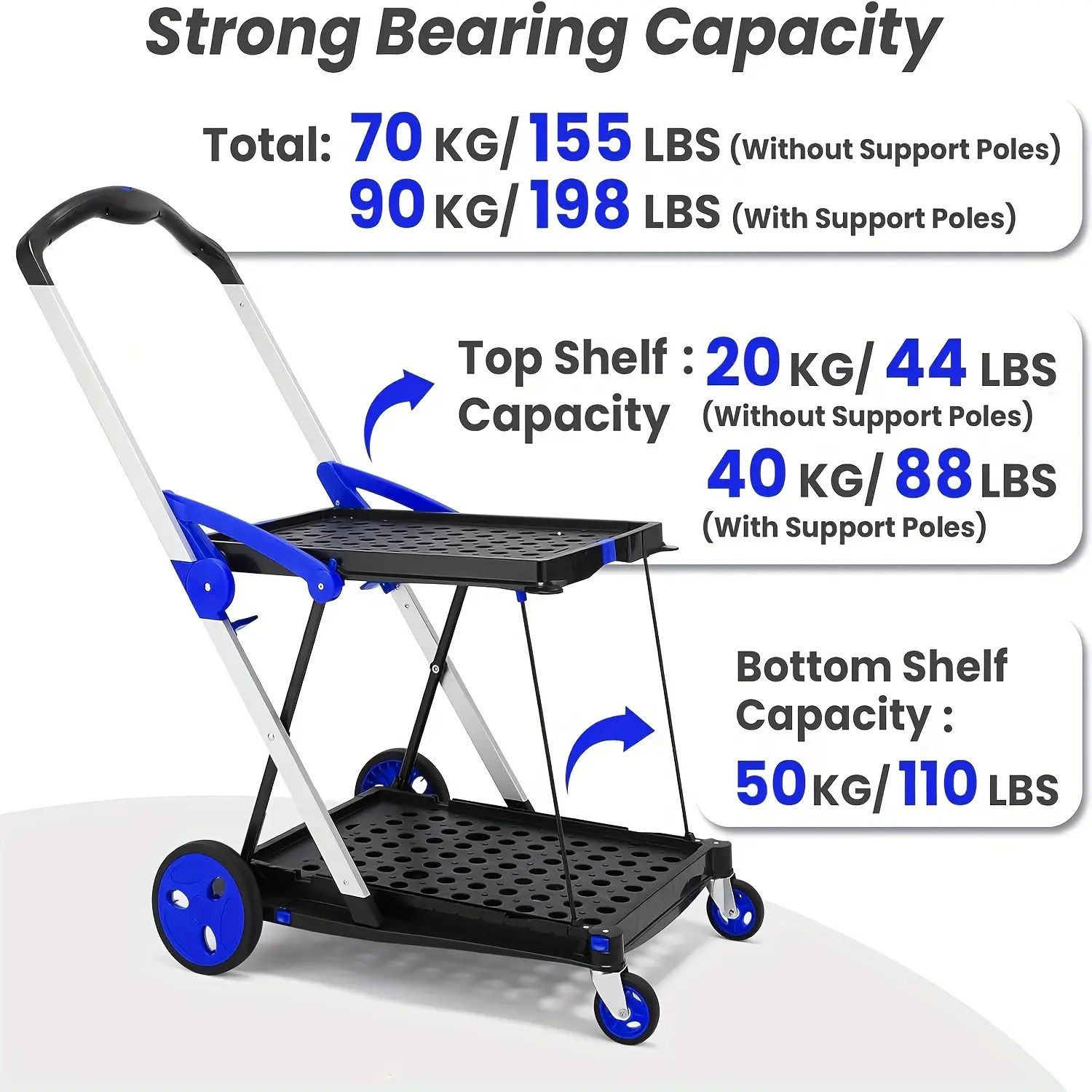 Double Frame - Collapsible Shopping Cart (Blue)