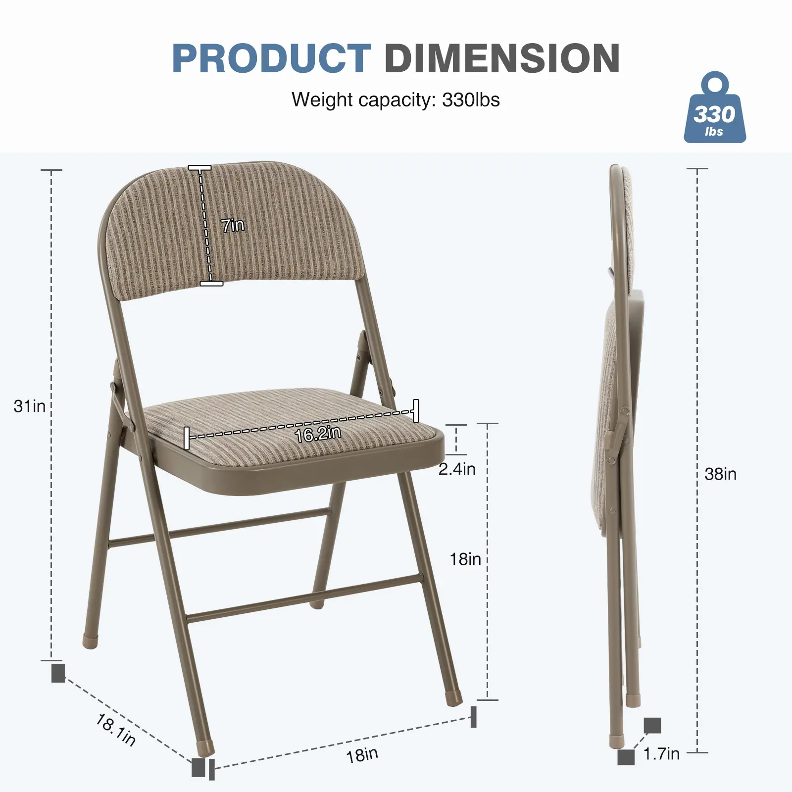 ·Convenient 4 Pack: Easily foldable in a few simple steps, these dining chairs are perfect for storage and transportation. With a folded size of 38" x 18" x 4" (L x W x H), they can be neatly tucked away in a corner or gap, maximizing your space.