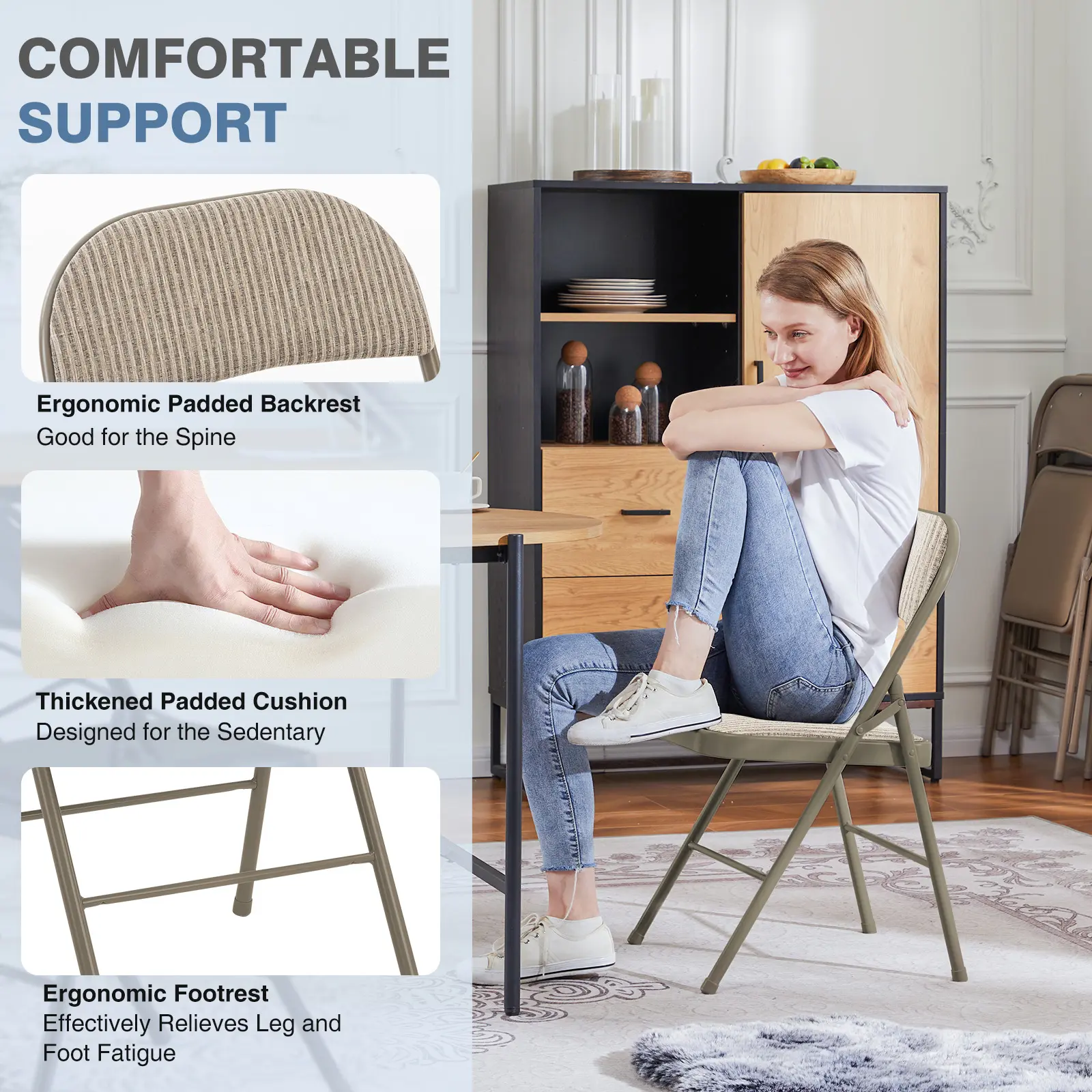 ·Extremely Comfortable: Covered in breathable fabric and filled with high-density sponge, these folding chairs provide excellent support and a comfortable sitting experience. The ergonomic backrest perfectly fits your body curve, allowing for maximum relaxation.
