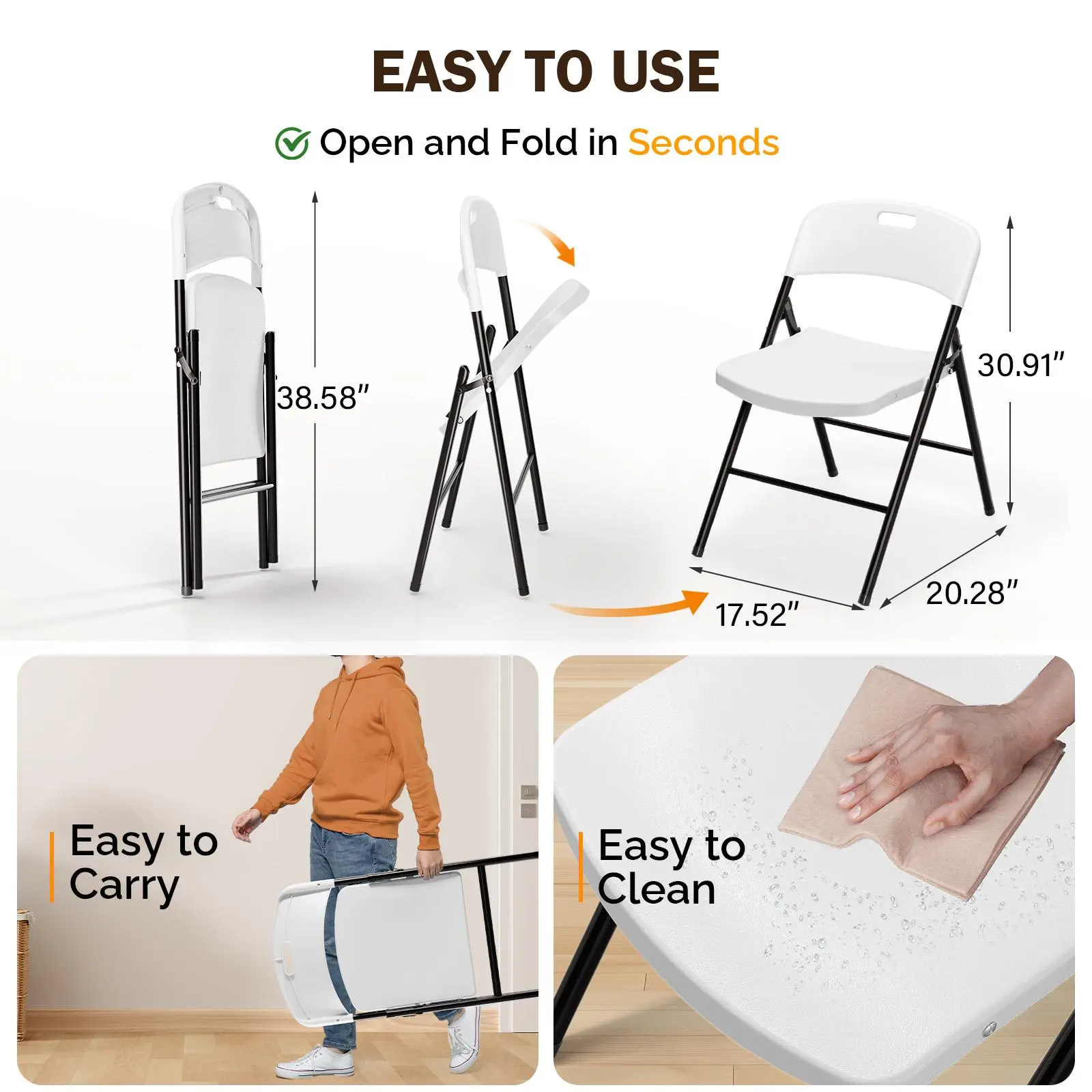 These chairs are very sturdy and I like the fact they’re easy to carry around and doesn’t take alot of space to store.