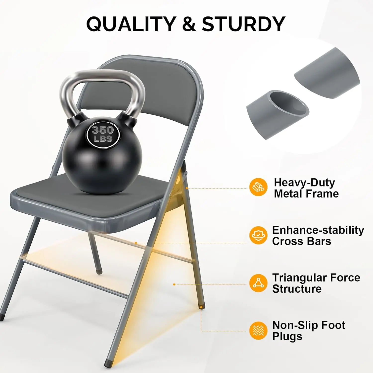Durable and Sturdy: Featuring a steel frame with a triangular stability design and reinforced support points, this folding chair ensures exceptional structural stability and durability. Capable of supporting up to 350 pounds, it offers reliable support and long-lasting performance.