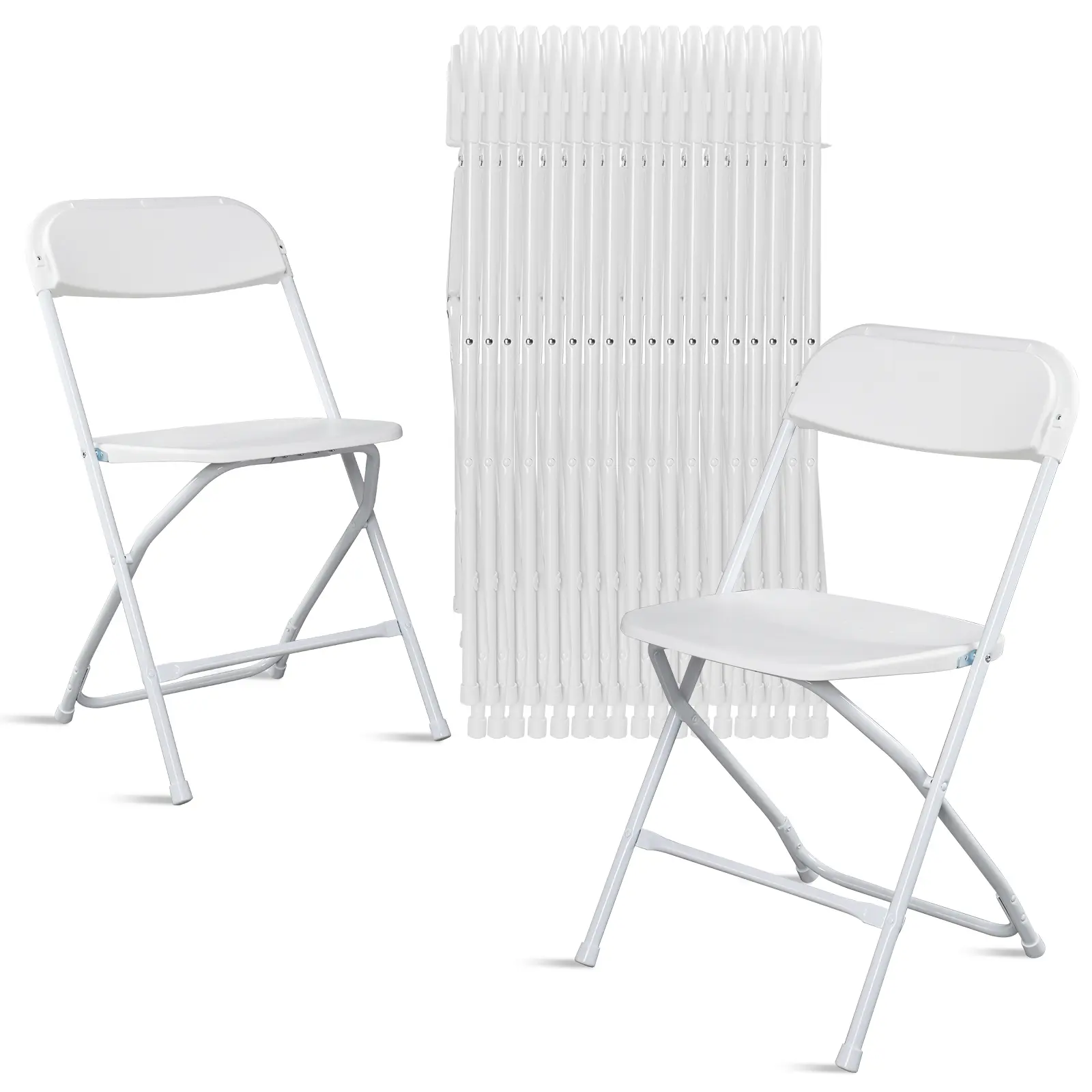 Plastic folding chairs are ideal for gathering, parties, home, offices, churches, schools, picnic. They won't get mouldy for heavy-duty plastic material and metal material with powder coating. Chairs could allow 350 lbs capacity with upgrade on tube and metal thickness. Plastic chairs are lightweight, so we could move them effortless.