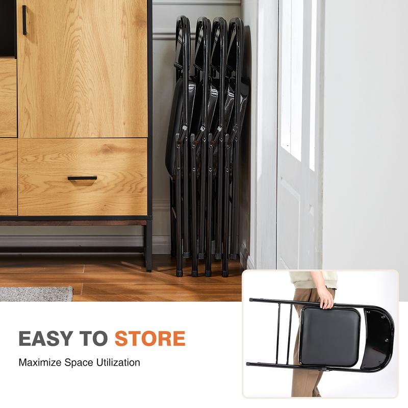 ·【Superior Comfort】The folding chair's backrest and seat cushion feature high-density sponge padding, providing exceptional comfort for you or your guests. The premium quality PU leather used gives an excellent touch and provides an impressive sitting experience, making this chair soft and comfortable yet durable and easy to maintain.