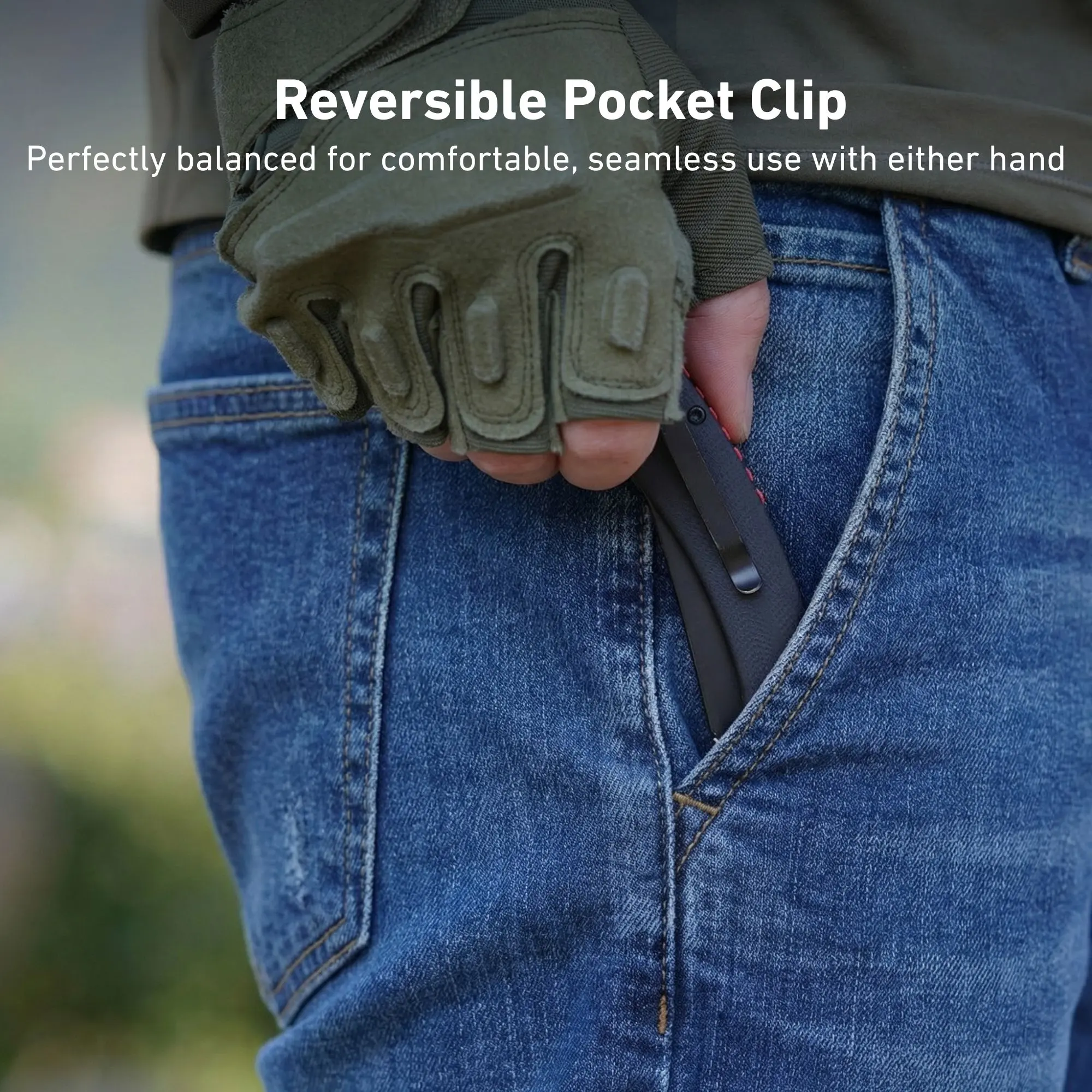 ·A textured G10 handle helps you grip the knife and the steel clip allows you to easily attach it to your belt or pocket