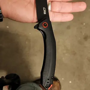 I'm not much for upswept Persian style blades but this knife caught my eye and it's absolutely amazing!!!! Form, function, aesthetics are amazing......no...... Mind blowing!!!!! This knife is so comfy in my hand I can't stop fidgeting with it!!!! CJRB hit a grand slam with this folder!!!!