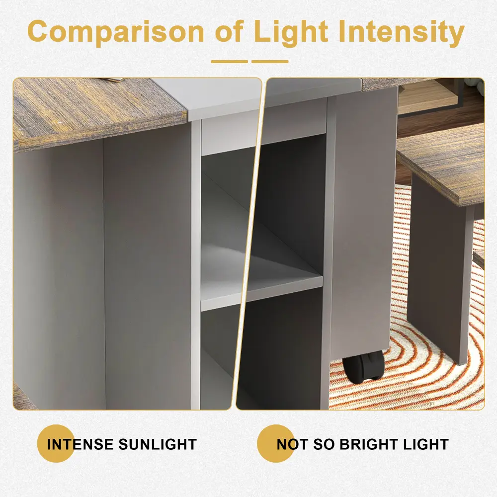 Multi-functional folding table: It can be folded into console tables of different sizes. When fully unfolded, it is a kitchen table that can accommodate 4-6 people. When folded half or fully, it can be a desk, coffee table, kitchen island, computer desk, end table and hallway, saving space and being versatile.