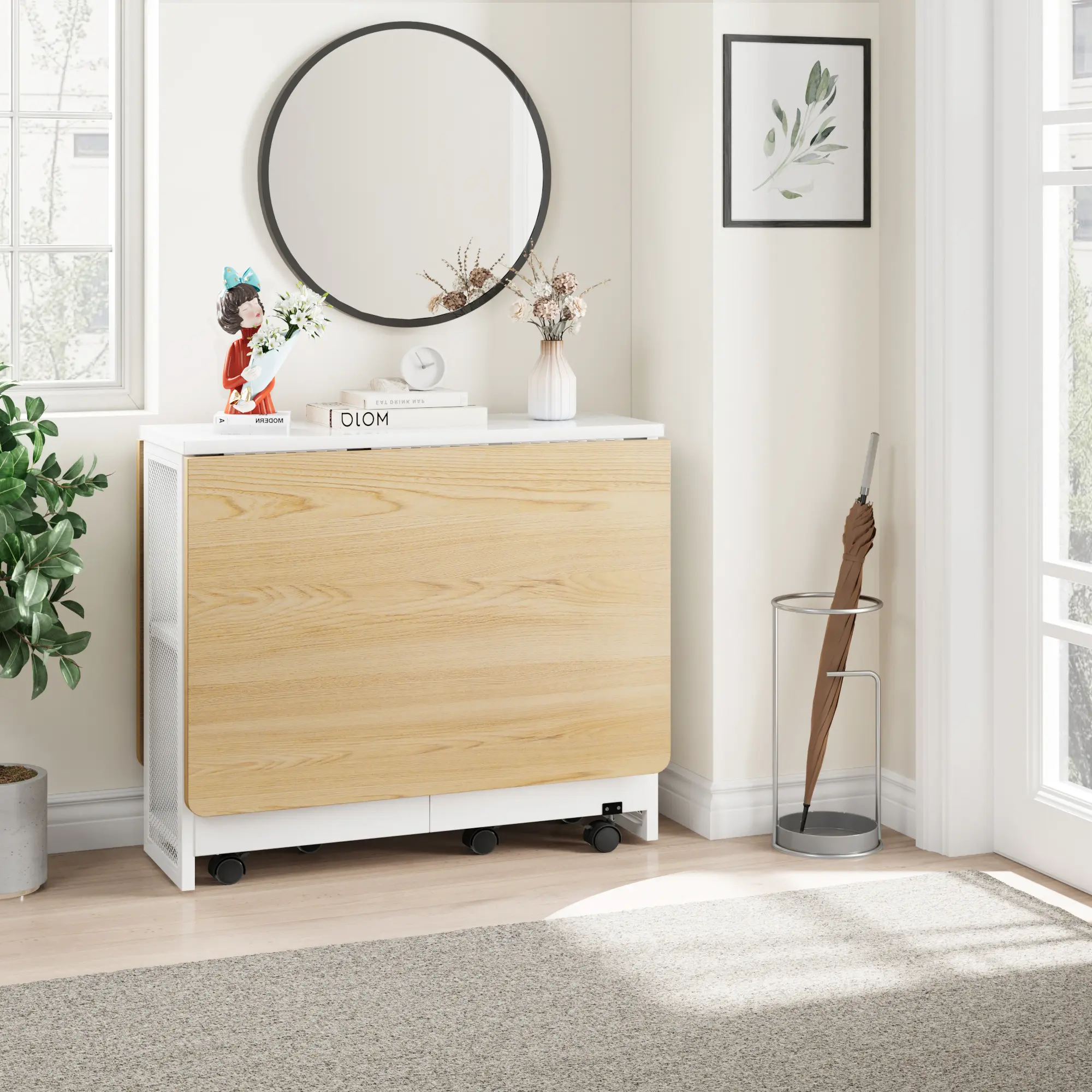 ·2.Versatile & Adjustable for Multiple Uses-Transform this table to suit your needs—expand it to a full-size dining table (47.2" L) for 4-6 people or fold one leaf down for a compact desk perfect for work, meals, or entryway storage. Use it as a kitchen prep table, home office desk, or even a console table. The flexible design adapts to your lifestyle effortlessly.