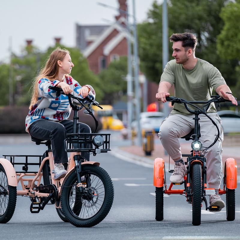 SIZE And Front & Rear basket: 20 inch Adult electric bicycles is suitable for 4.2 to 6.9 ft height; The load capacity of the 3 wheel electric bicycle is 450LBS. MOONCOOL electric tricycle for adults offers a front basket and a large rear basket, perfect for groceries, supplies. The rear basket is designed to be pet-friendly, ensuring a safe and comfortable travel experience for your furry companions.