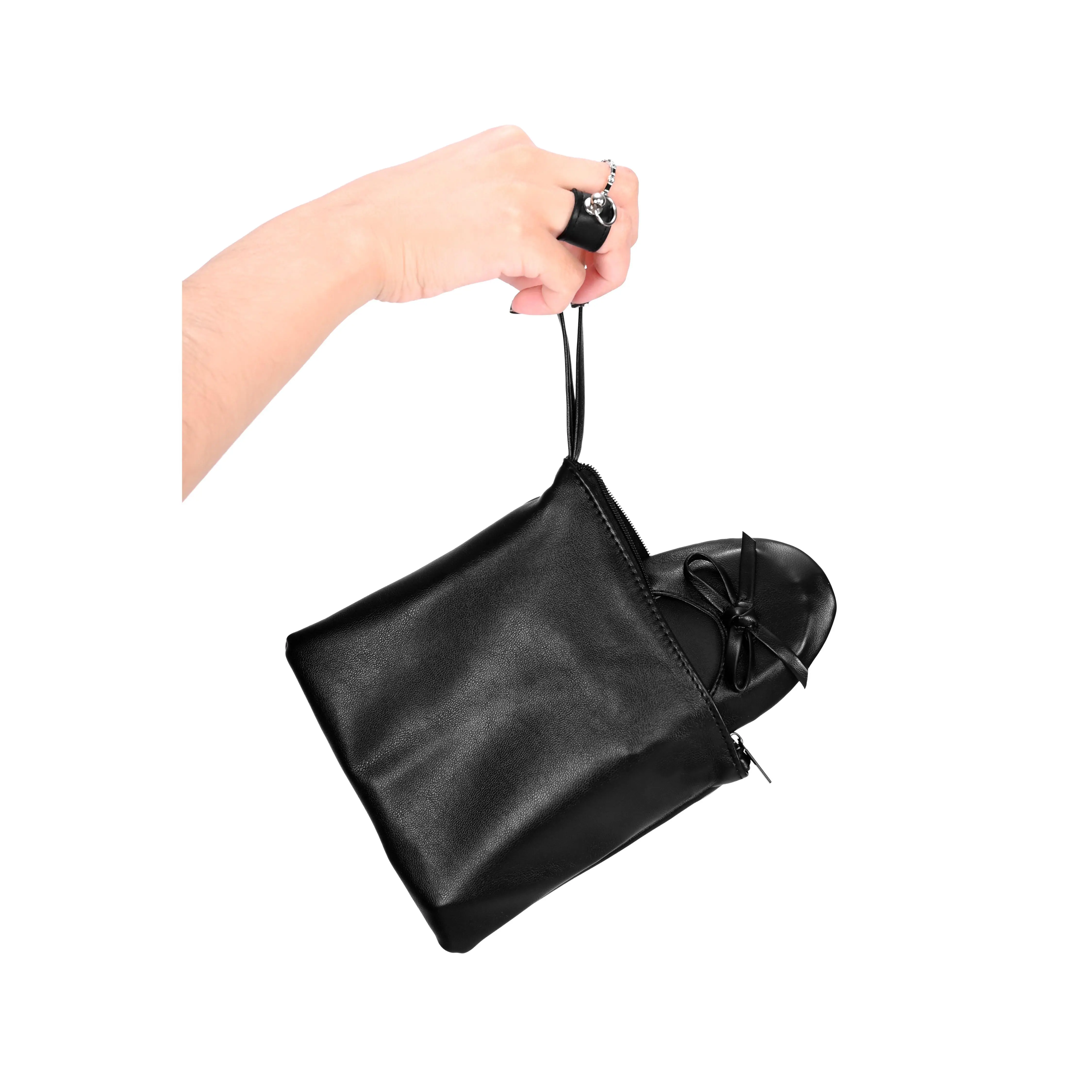 Black patent folding flats made to switch out of platforms after a long day at a convention or even a night out.