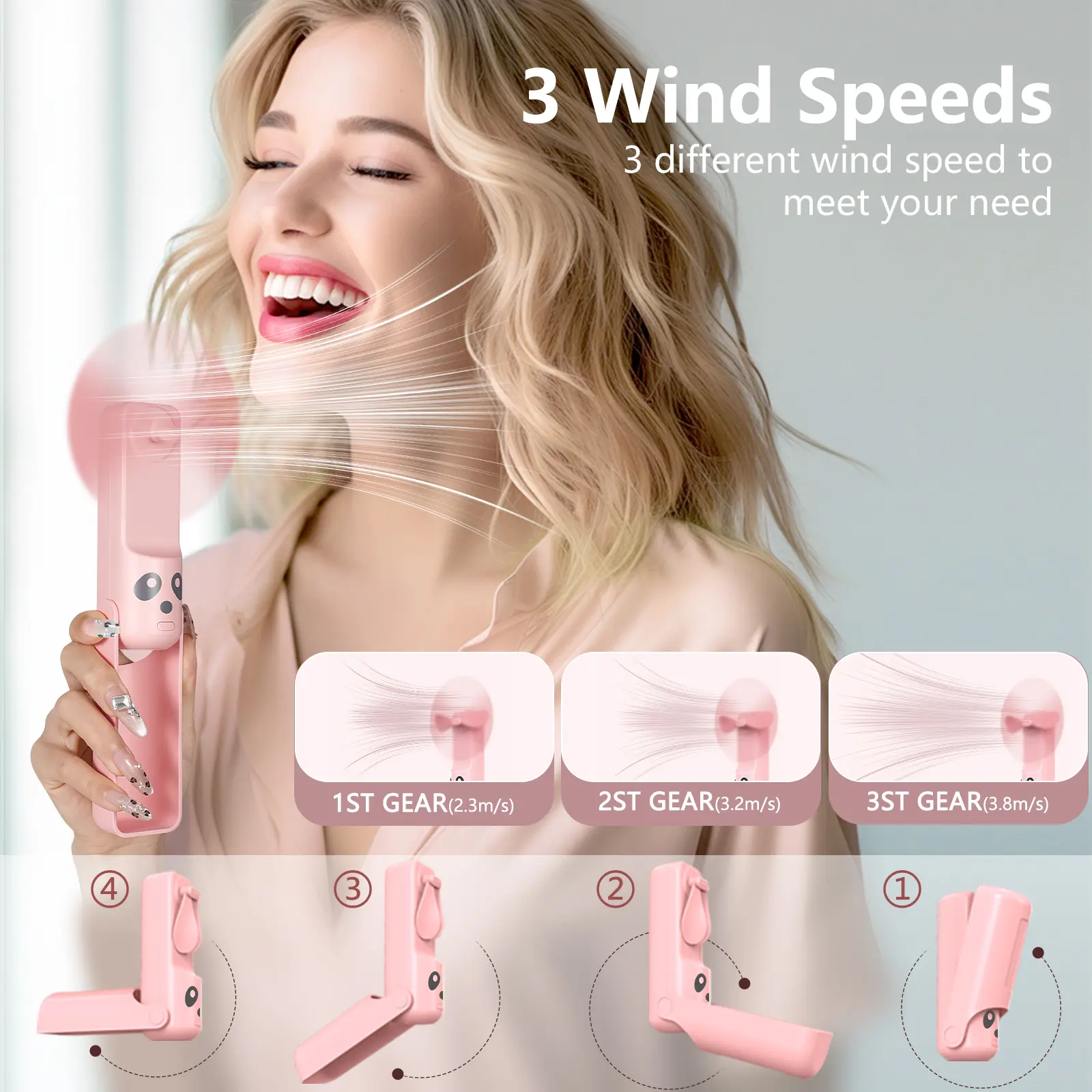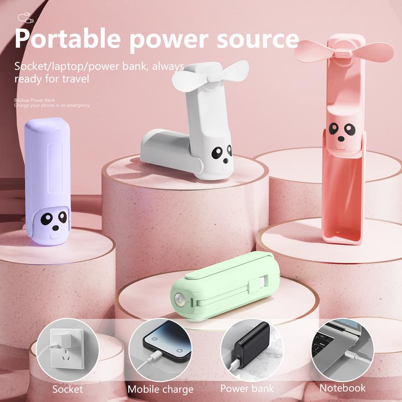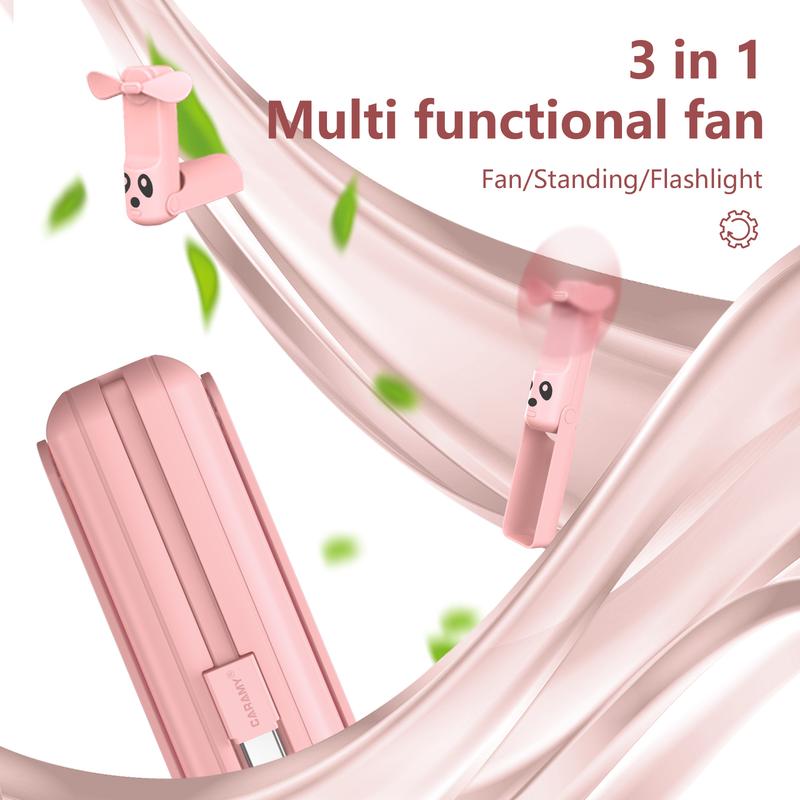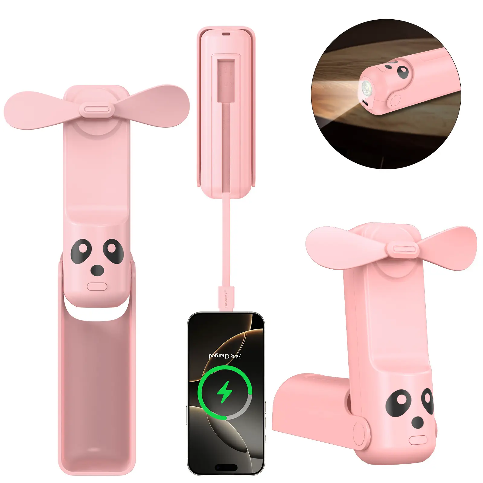 5. Foldable Handheld Portable Power Bank Mini Fan USB Rechargeable Desktop Fan with Wired Power Bank Portable Fan Mobile Power Bank Charger Pink Folding fan
