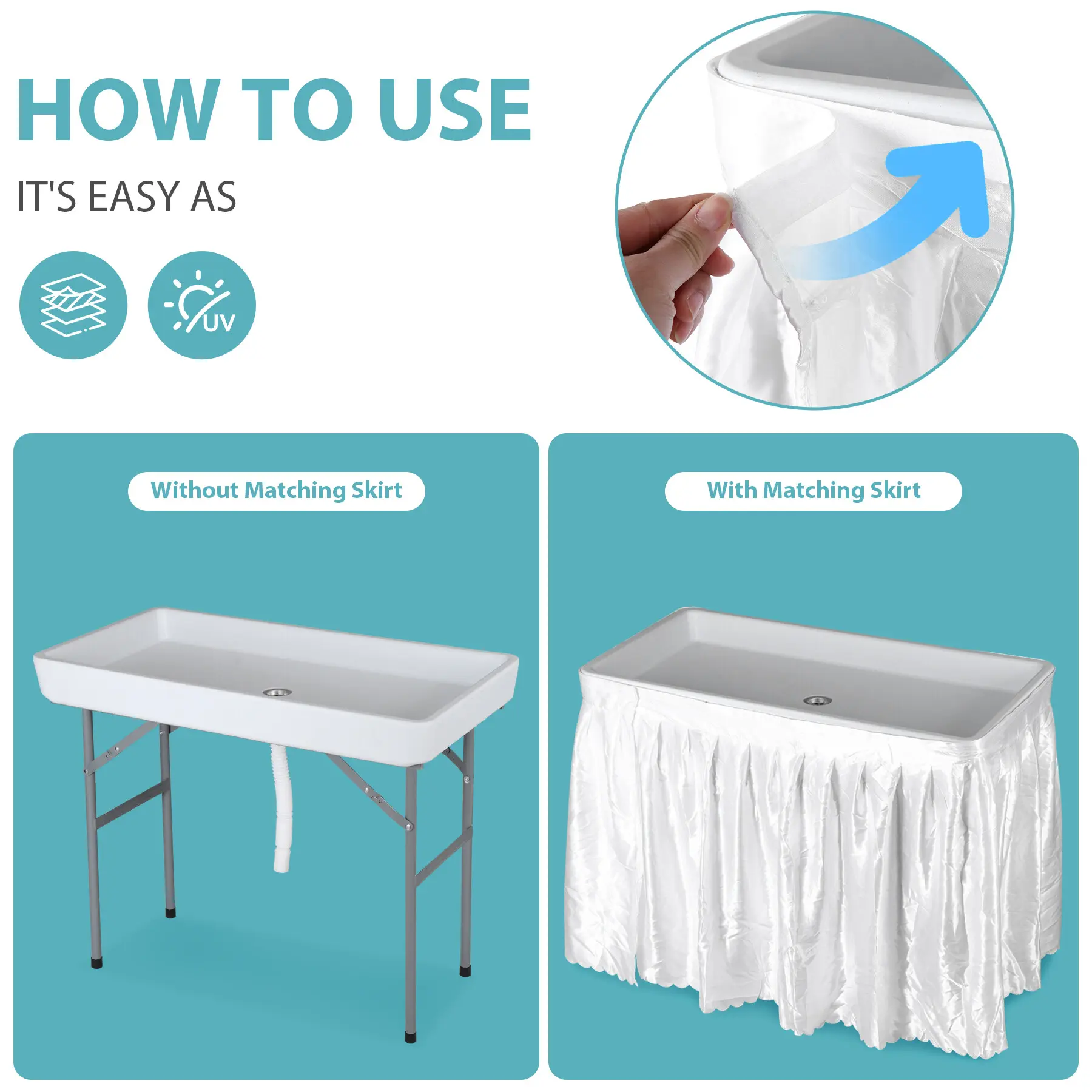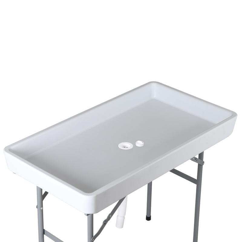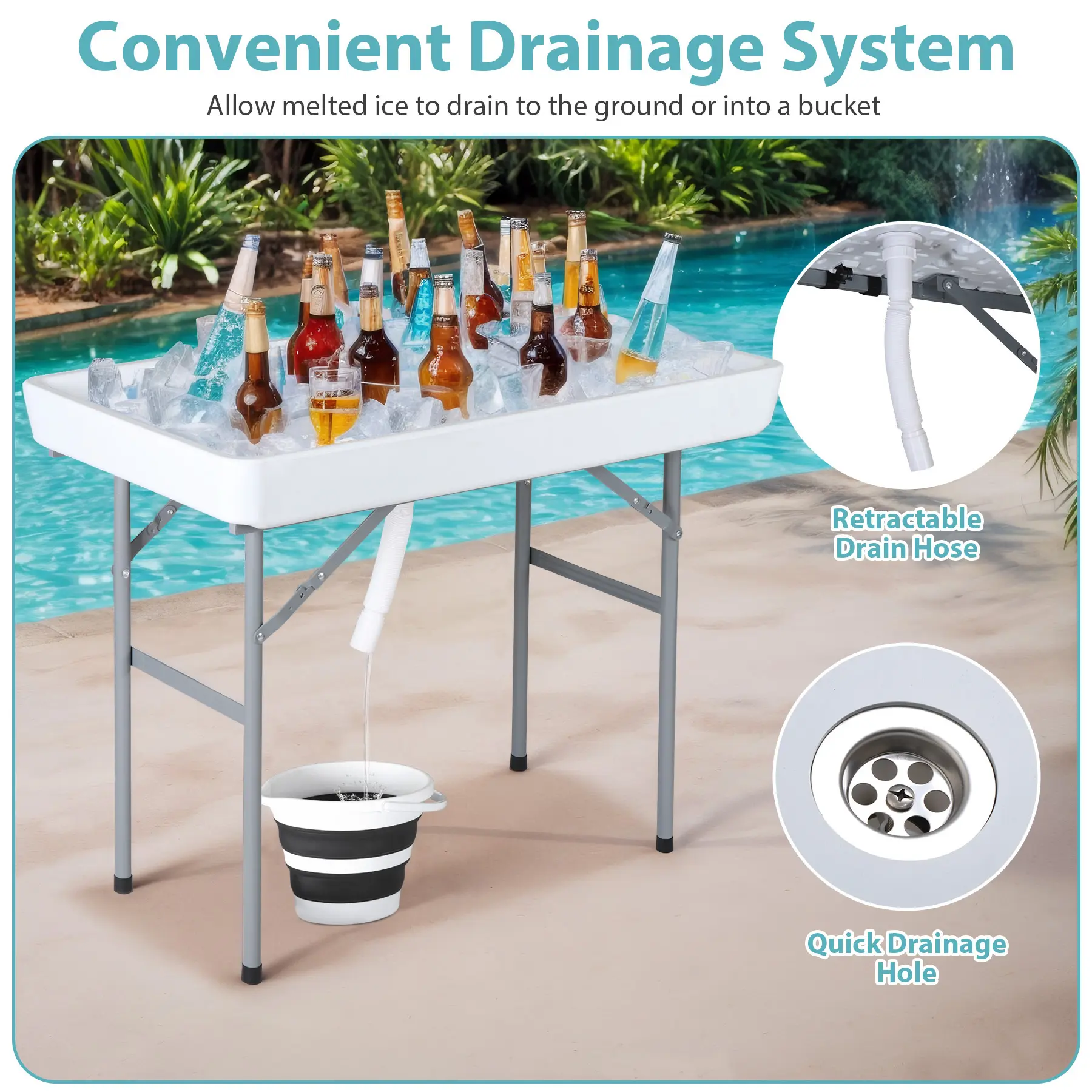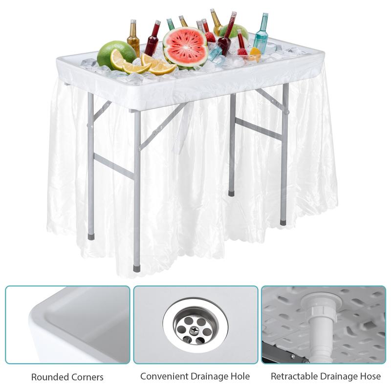 ·Equipped with reinforced metal legs and protective foot pads that can securely support weights up to 440 lbs, this ice table also features a high-density polyethylene surface which provides excellent resistance to cold, heat, and corrosion, ensuring long-lasting durability.