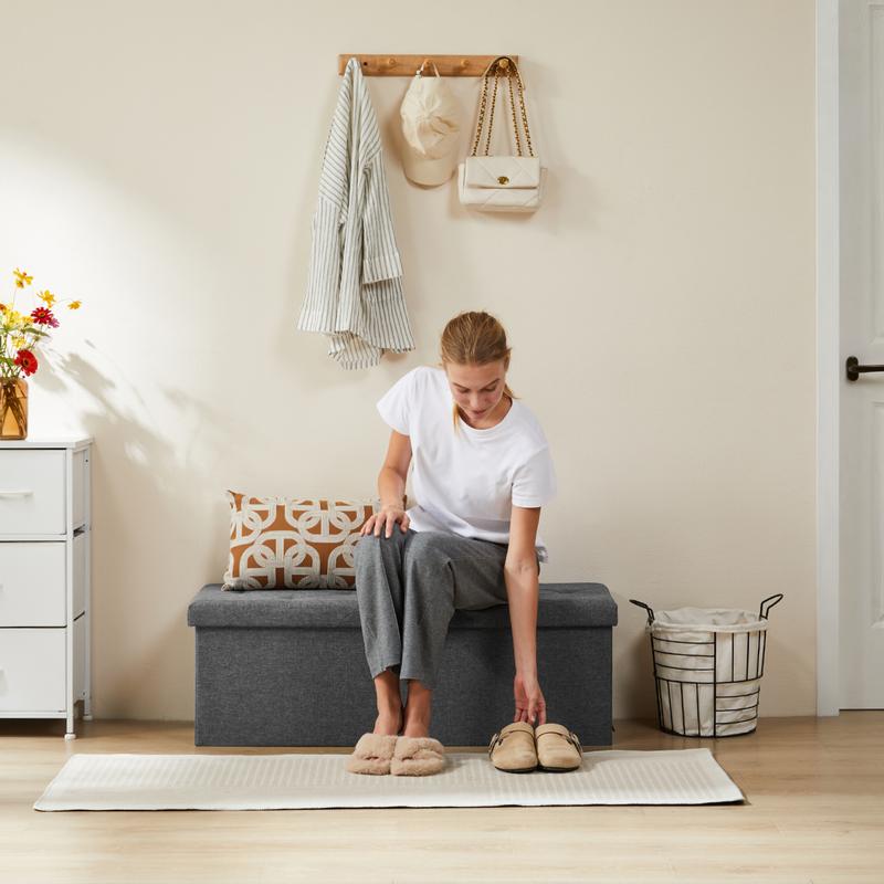 ·[Comfortable & Durable] The entire surface of this storage ottoman bench is covered with linen fabric and the top is filled with high-density foam to ensure it is soft and comfortable. The ottoman stool is supported throughout by a thick MDF board, giving it a static load capacity of up to 660 lbs.