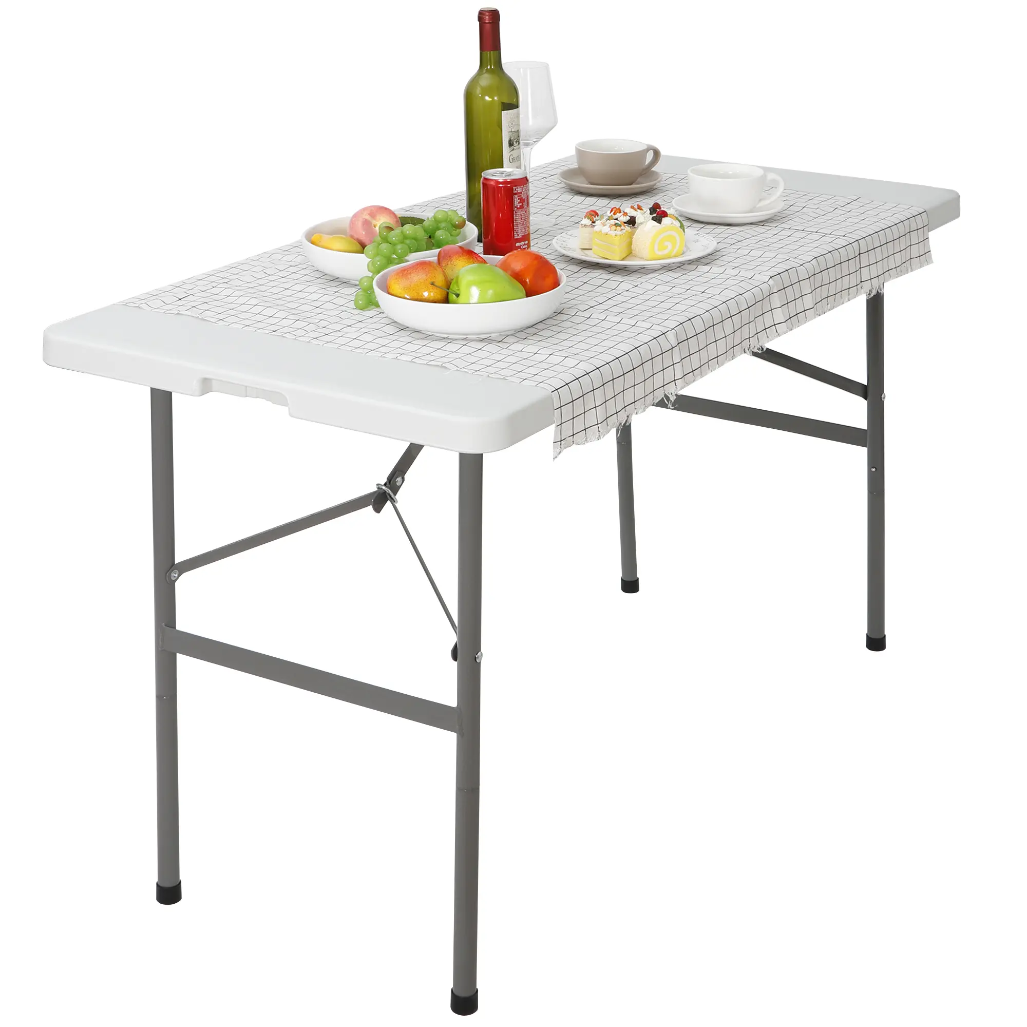 The portable folding table can be used as a picnic table for outdoor use, a side table for RV outside, a BBQ, a serving table for dining, a small patio table for adults, a camping table for the beach, fishing.