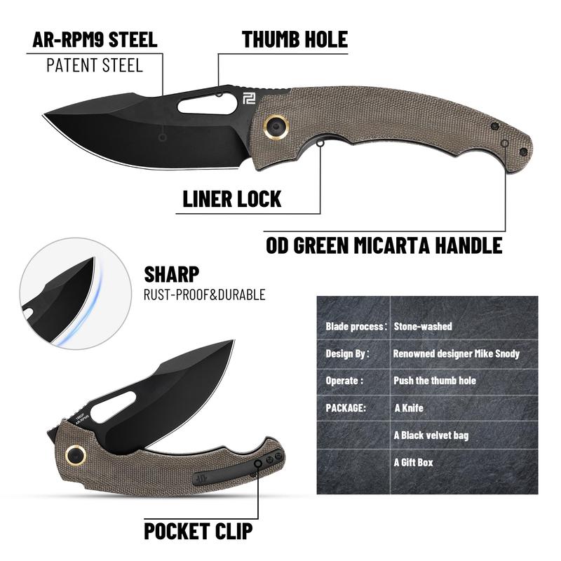 ·Pure Performance: Each element of this pocket folding knife is intentionally designed, from the robust AR-RPM9 blade and ergonomic shape to the premium handle materials and deep-carry clip, ensuring an excellent user experience.
