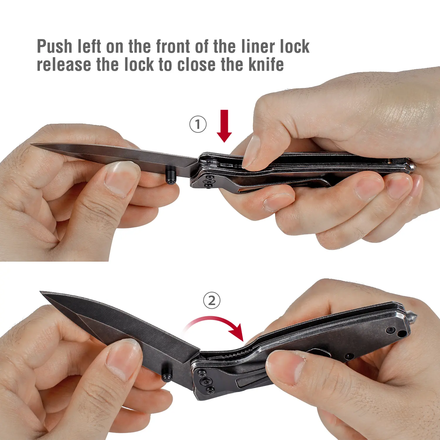 ·Secure Liner Lock & Thumb Stud: A sturdy and reliable liner lock helps prevent the blade from accidentally closing during use. To close, push left on the front of the liner lock to release the lock. Features a two-sided thumb stud that makes one-hand opening easy