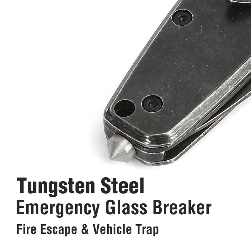 ·Tungsten Steel Emergency Glass Breaker: Tungsten steel (carbide) emergency glass breaker has high hardness, wear resistance, good strength and toughness, heat resistance, and a series of excellent properties, suitable for fire escape & vehicle traps. Tungsten stands up to heat better than any other metal, having the highest melting point and expanding less than any other pure metal from heat