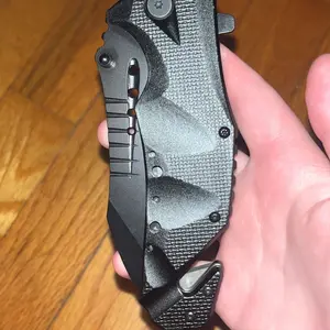 decent quality knife also has some weight to it more than i thought plus the add ons like the seatbelt cutter and window breaker good for protection. great for the price and very useful for multiple purposes had a few issues closing it but just lift the latch in the middle