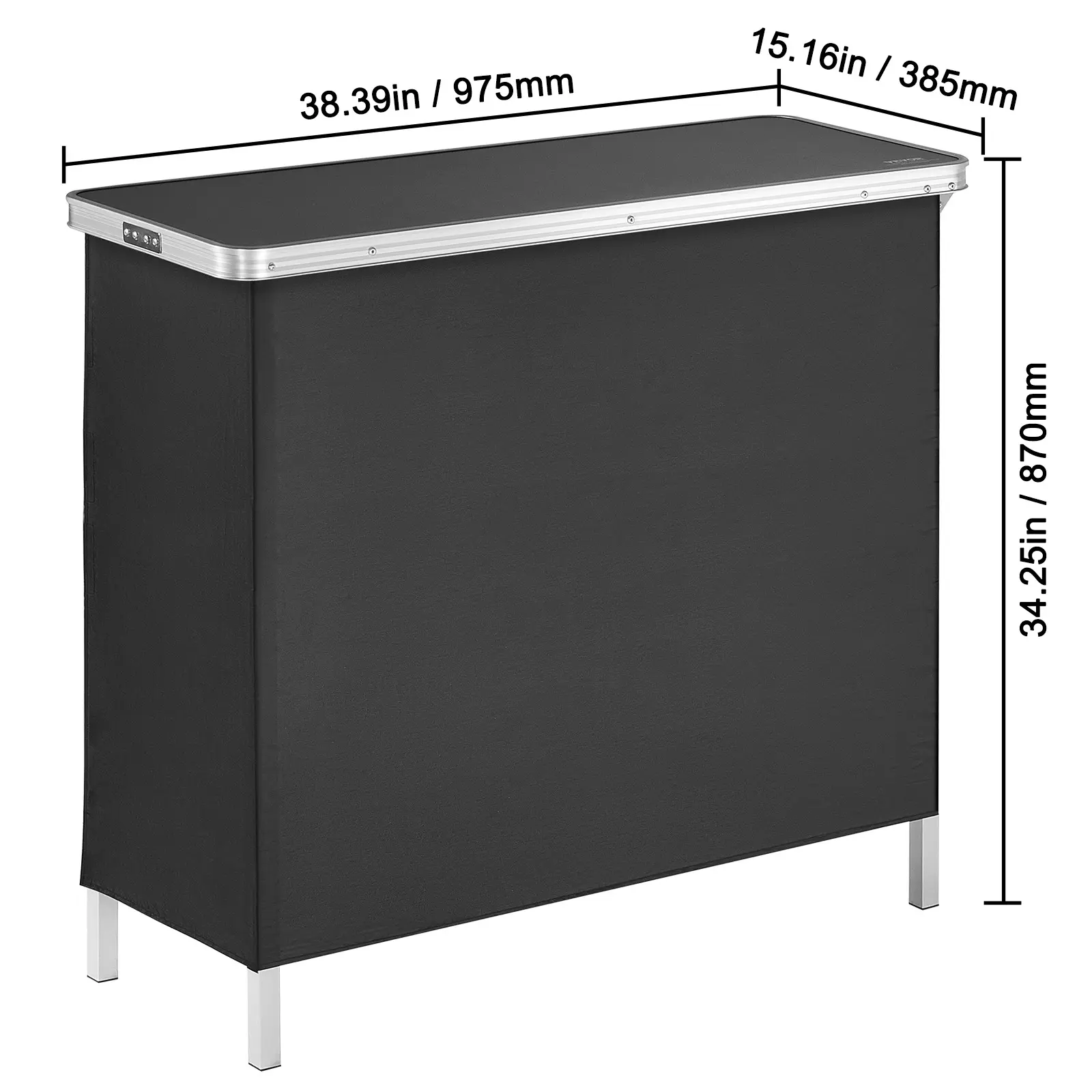 5. VEVOR Folding Portable Bar Table, Tradeshow Podium Table for Indoor, Outdoor, Party, Picnic, Exhibition, Includes Carrying Case, Storage Shelf and Black Skirt, 38.39" x 15.16" x 34.25"