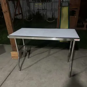 Tables are awesome the tops are a little thin I noticed a few dents after first use but they work amazing i use them for processing meat for my family