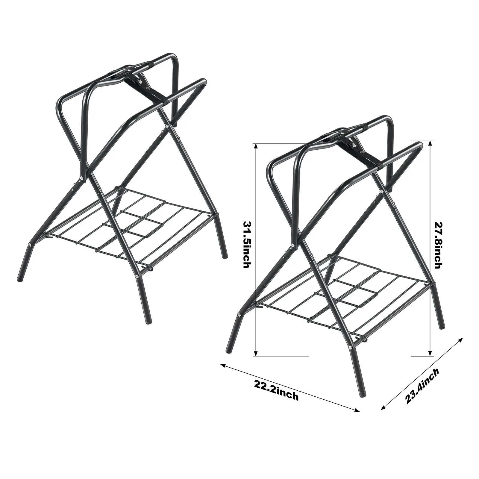 • Fold and Go: Short on space? This foldable saddle rack saves room and is light enough to move from the barn to the garage without breaking a sweat!