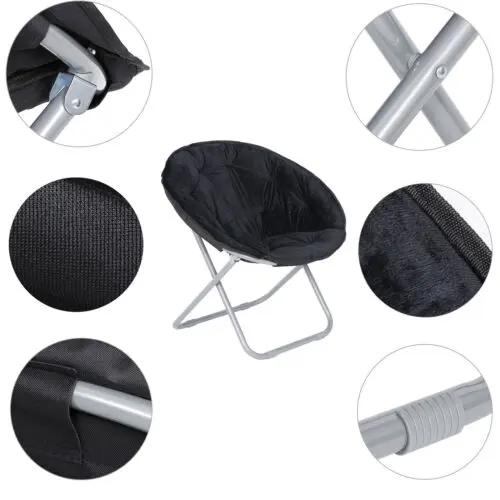 A foldable steel frame supports up to 242 lbs and folds flat when not in use, making it easy to hide this saucer chair out of sight without taking up a significant amount of room in tight spaces.