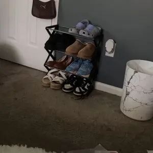 It’s small and it doesn’t even hold that many of my shoes and even when it does, it falls over and breaks really easily. I don’t recommend.