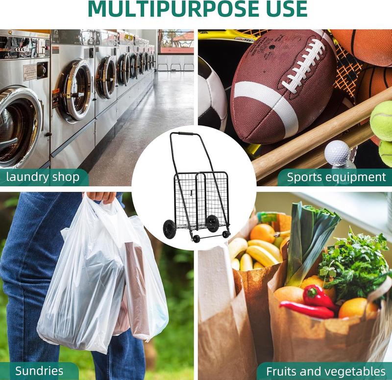 Versatile and Multi-Purpose: This utility cart is not limited to shopping trips. It can also be used for various purposes such as organizing and transporting laundry, storing household items, or even as a portable storage solution for picnics or camping trips. Its versatility makes it a practical tool for everyday life.